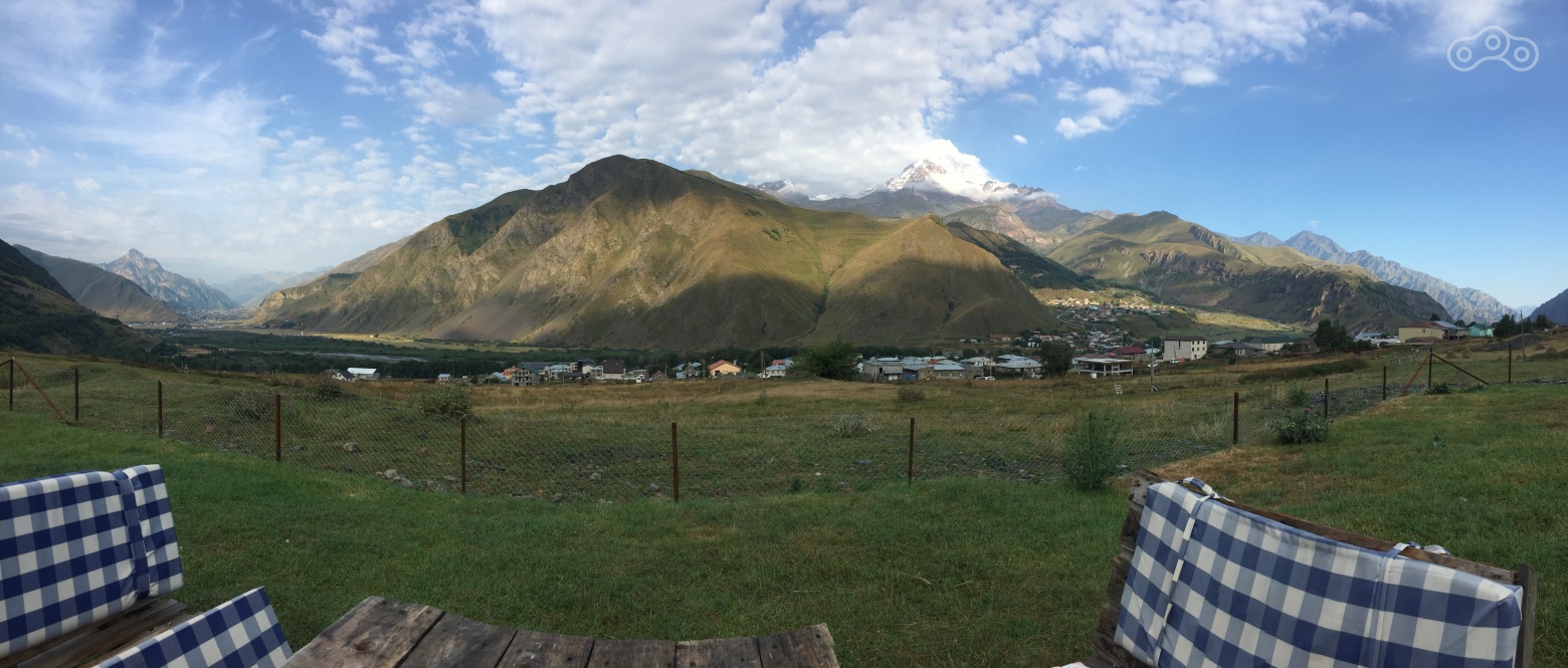 Сразу после границы, в Степанцминде, рекомендую задержаться или переночевать. На фото наш гестхаус на рассвете.