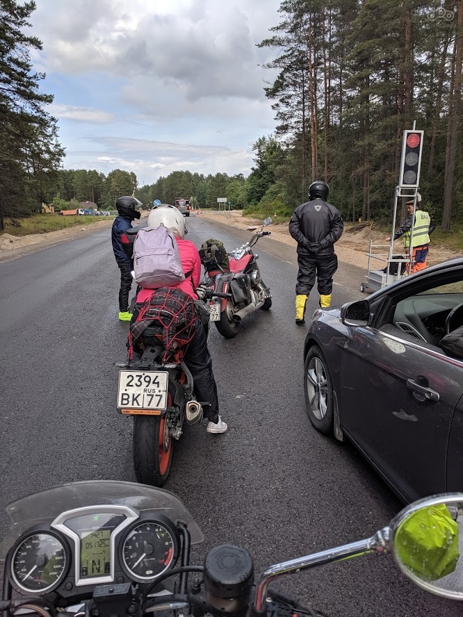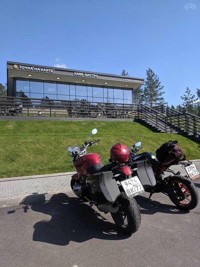 Большинству трасса Москва-Питер не представляет ничего интересного, поэтому этот момент опущу. Итак, мы с другом спокойно добрались до отеля, переночевали и на следующее утро собрались полной компашкой: Виталя на Ямахе, Саша на КТМ и Андрюша на Хонде. И кстати это первый для меня опыт езды в колонне на такое расстояние. Ну привык я один ездить)