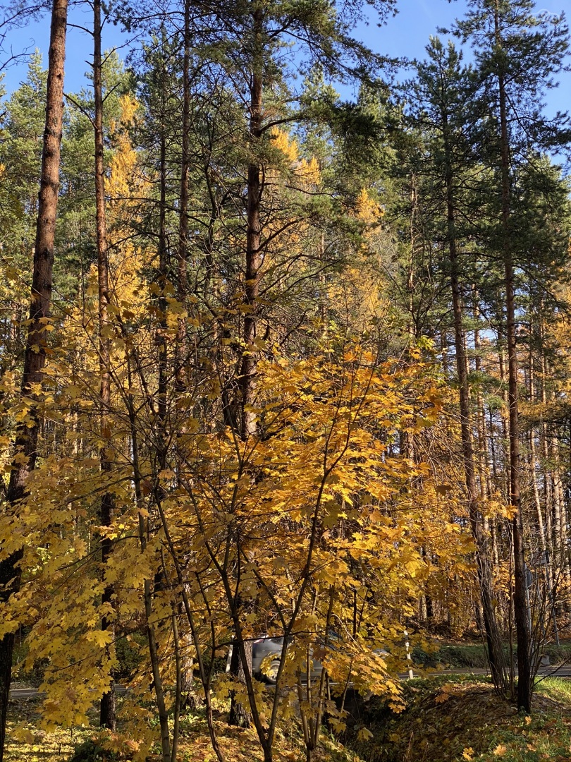 Мне казалось оно всё уже опало и пожухло, однако нет. Местами встречается золото.