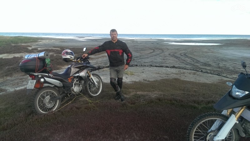 Очень скоро село солнце и стало заметно прохладнее, что-то около двенадцати градусов. Останавливаться мы стали всё чаще и чаще. Забавно, наверное, было со стороны наблюдать как на трассе останавливаются два байкера, один наматывает круги до леса и обратно, а другой прыгает в присядку и отжимается, или пытается обнять теплый движок. Было бы смешно, если бы не так грустно. Температура постепенно падала, а во время езды, ощущение было такое, что на улице минус двадцать. Ехать быстрее восьмидесяти километров в час было просто самоубийством. Ветер пронизывал до костей, пальцы на руках замерзали настолько, что я с трудом ими шевелил. Самое страшное, что во время езды, меня непроизвольно бросало в крупную дрожь, да так, что я боялся слететь с дороги. На очередном привале я даже собирался разрезать туристический коврик и подложить под куртку, но прикинув что возможно придется заночевать в лесу и спать на ледяной земле, от этого зверства отказался.