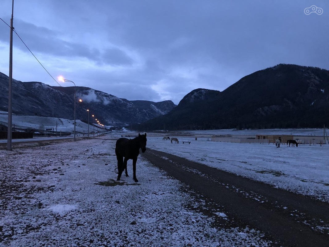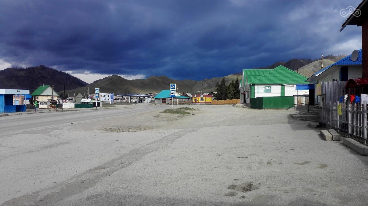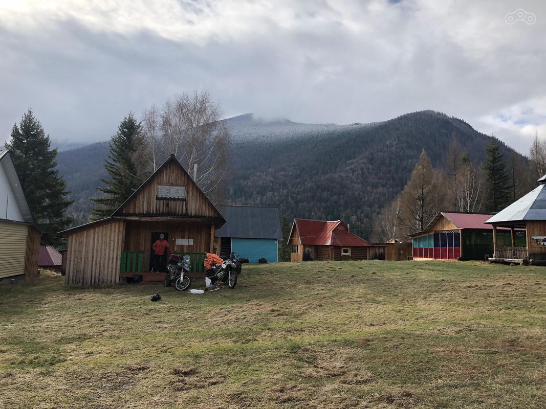 Так постепенно пробираясь через холмы, мы приближались к месту нашего очередного ночлега. Одна только мысль еще одной ночевки в палатке приводила меня в ужас, да и просто хотелось нормально выспаться. Решили поискать гостишку в Городке Усть-Кан. Буквально сразу на въезде мы нашли то что искали. Маленькое здание с вывеской «Гостиница» и дворик с воротами, да еще и тут же кафе и магазин. Заселились, поели, а ремонт и обслуживание двухколёсных решили отложить на утро следующего дня.