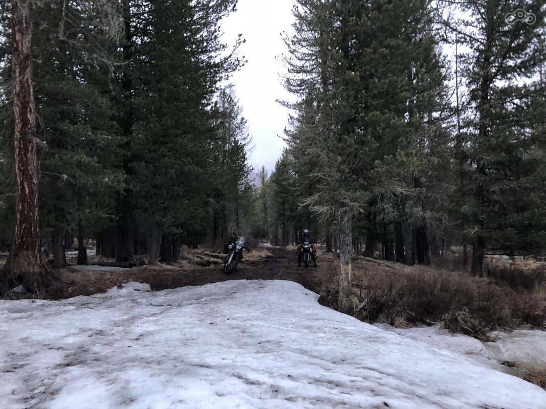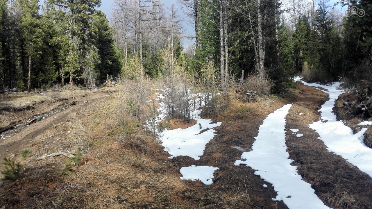Наконец мы выехали на дорогу в том месте где она расходилась. Решив, что это просто две дороги, которые потом опять сойдутся, я поехал по левой. Метров через триста показался снег. Мы с Сусаниным стояли на поляне, полностью покрытой толстым слежавшимся снегом с ледяной корочкой. Пока я пытался отдышаться, Лёша сходил на разведку. Вернувшись доложил: