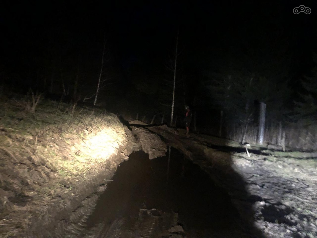 К забору мы подъехали уже в сумерках, а пока разбирали и собирали его, совсем стемнело. А дальше то куда? Перед нами огромная поляна, изрытая траншеями вдоль и поперек. Днем то ты видишь метров на сто вперед и прикидываешь где газануть, а где аккуратно проползти. А тут фара выхватывает метров пять, а за холмиком вообще не понятно что. Да еб… оно всё конём. Я примерно выбрал нужное направление и дал по газам. Красиво шел, но не долго. Через минуту я сидел на брюхе по уши в грязи. И снова дружище спешит на выручку, и мы тащим его на себе. Еще через сто метров я влетаю поперек колеи. Колёса просто болтаются в воздухе. И опять мы с Лёхой его корячим, пытаясь поставить в колею. Десять минут адских мучений и успех. Дальше еду уже по колее, куда-нибудь да выведет. Выскочили на дорогу и поехали вниз. Ночью ты теряешь ориентиры, за которые днём зацепился твой глаз и местность становиться полностью не узнаваемой.