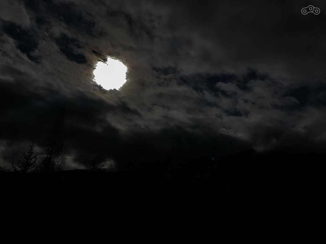 На середине спуска нас снова накрыло снежной тучей, и мы опять смогли понаблюдать за чудом снегопада, которого нет. Спустившись, мы решили, что не поедем сейчас смотреть на речные пороги и обязательно вернёмся сюда летом, всё осмотрим и излазим, а ночевать будем непременно на вершине той самой горы.