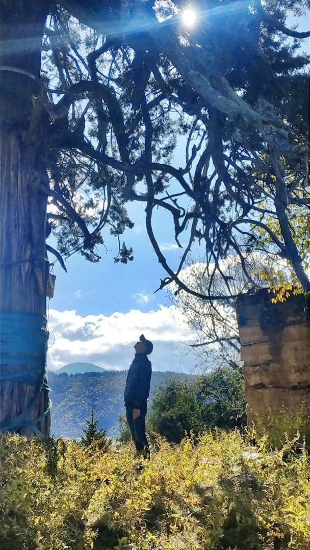 По пути к Снежной Горе Мейли я миновал тибетский храм и остановился, чтобы отдохнуть. Там я увидел подростка на склоне холма, смотрящего на 400-летний кипарис. Старое дерево и молодой человек смотрели друг на друга. В то мгновение я почувствовал, что жизнь слишком коротка и я должен воспользоваться своей молодостью, чтобы увидеть мир. Какой смысл оставаться на месте и всю жизнь видеть одни и те же пейзажи, даже если вы бессмертны? Путешествия в одиночку порой приводят к удивительным открытиям.