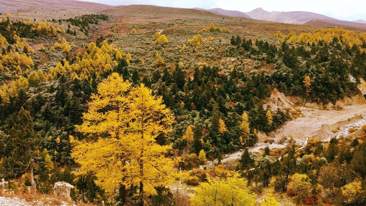 Я ехал по национальной автомагистрали 214 Диан-Тибет-роуд. Пейзажи по пути расстраивали: грубые, примитивные и грустные. Решив, что так не пойдёт, я свернул на грунтовую дорогу в поисках стоящих видов и не прогадал. Почти заблудился, слишком сильно отклонившись от главной дороги, но вовремя обнаружил, что впереди находится снежный горный пик Байма. Пейзаж был похож на рабочий стол компьютера, который использовался много лет назад. Просто пожелтевший.