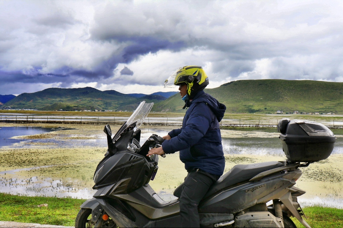 Шангри-ла очень живописен поздней осенью. Кажется, что ты как никогда близок к небу. Вода и небо одного цвета! Cruisym 300 отвёз меня на склон холма у озера Напа. В тот момент я вспомнил песню Лихома Ванга, которую слышал много лет назад - «Солнце и луна в моем сердце». Мне всегда нравился мотив, но только увидев захватывающую дух красоту пейзажей Шангри-ла я понял значение мелодии и текста песни.