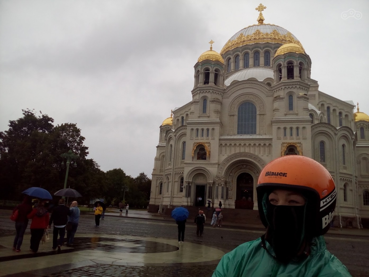 То что в городе было слабым дождиком на берегу превратилось в полноценный шторм. С дамбы нас, конечно, не смывало, но было полноценное ощущение езды на гидроцикле. Кронштадт запомнился горячим кофе на заправке, горячей едой в какой-то забегаловке, тем что все местные женщины говорят о погоде – мужья в море и Морским собором, суровым в своей строгости. А нам ещё предстояла дорога назад... В общем девушка со мной потом что-то не разговаривала. Но эта поездка нам запомнится надолго)