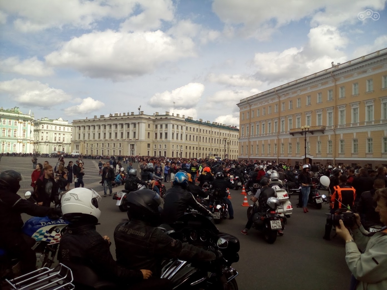 Кульминацией фестиваля стал проезд колонны из 4000 мотоциклов по улицам Санкт-Петербурга. Получаешь море позитива от всех зрителей, которые толпятся на тротуаре и радостно машут проезжающим мимо мотоциклистам. Помните кадры кинохроники о встрече Гагарина в Москве? Очень похоже) Обратная сторона этого в необходимости очень пристально следить за окружающими тебя мотоциклистами и в том, что всей картины ты не видишь. Если в будущем сезоне поеду а Питер ещё раз – однозначно буду смотреть на колонну со стороны, хочется сравнить впечатления.