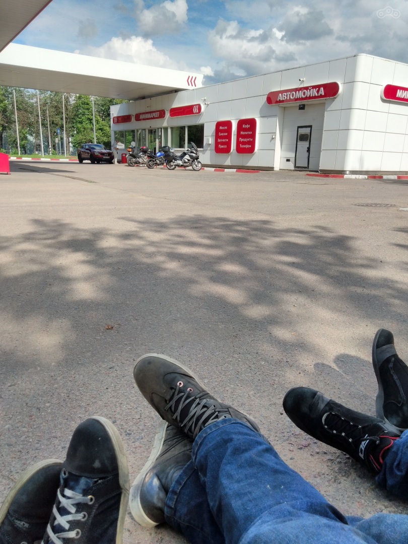 Обратно едем по платке. Во-первых, интереса ради, во-вторых, хочется быстрее доехать. Попытка выбраться из города без навигатора к успеху не привела. Намотали несколько кругов по утреннему мокрому Питеру. Опять же, логика дорог здесь мне не покорилась. Новая трасса, конечно, не чета старой, только ехать медленно ней скучно. Тут бы Бусу или другой-какой спорт тур. Мы же держим 130, долго ехать быстрее мне не комфортно – устаёт шея. С заправками, как все и рассказывают, правда не очень. В среднем каждые 150 – 180 км. Мне хватает. Очередей на них особо не было. К Москве подъехали быстро, вновь уходим на бесплатку у Клина. Там наши пути расходятся. Вместе заправляемся, вспоминаем моменты, жмём руки…
