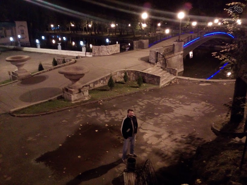 А дальше начался писец. По дороге в Минск поднялся сильный порывистый ветер. Я его, на приземистой и тяжелой DN, особо не ощущал, Миша на не менее тяжелом VFR, дополнительно загруженным самим Мишей и запасом шмурдяка тоже не испытывал подобных неудобств. Но я впервые в жизни лицезрел едущий боком мотоцикл. Лёгкому BMW под 60-килограмовой Нати было непросто сохранять курсовую устойчивость. Приходилось снижать скорость чуть ли не до 50 км/ч. И вроде бы чего сложного, проехать каких-то 280 км отличной дороги? Но усталость имеет свойство накапливаться, остановки снижают среднюю скорость чуть ли не до нуля, потом начался наш любимый дождь... В Минск приехали в темноте, нашли арендованную квартиру, покжинали и спать. Спать до упора.
