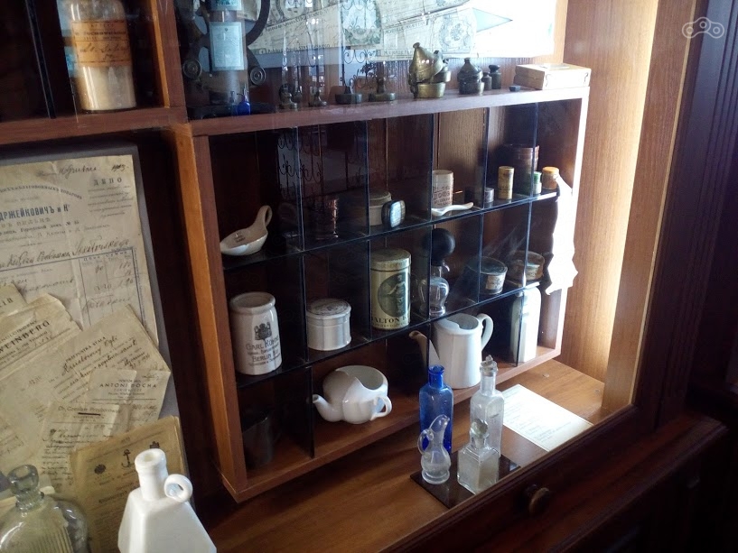 Ну и наконец-то мы в Гродно. Этот перегон был, наверное, самым холодным из всех. Было сухо, но пронзительный северный ветер всё портил. Одели на себя всё что можно, часто и надолго останавливались, казалось не доедем никогда. Спасали только установленный после поездок подогрев ручек Oxford. Сравнительный тест, кстати, показал что он удобнее и сильнее оригинального от BMW. Очень рекомендую всем ещё не имеющим сию полезную штуку не пожалеть трёх тысяч и установить её. В самом городе, кроме уже традиционной прогулки по центру, я неожиданно для товарищей, завёл их в музей-аптеку.