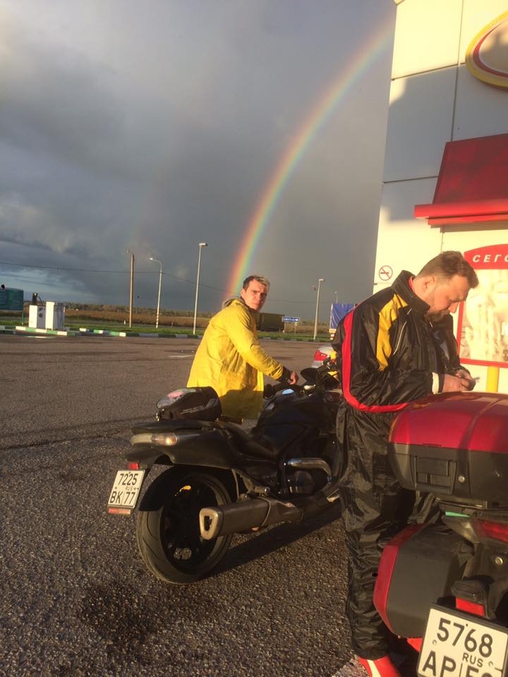 Вот лежу я сейчас под одеялом, пишу этот текст и сам себе не верю. Ну чего я так разнылся? Ну какие могут быть сложности в том, чтобы проехать 650 км по ровному асфальту, на отличных мотоциклах в приятной компании? Но ровный асфальт скрывала вода, потому что опять пошел проклятый дождь. А скорость и частота остановок любой группы на транспортных средствах определяется по слабейшему участнику. И тут победил я, со своими 150 км от заправки до заправки. А каждая заправка занимала всё больше и больше времени, ибо все устали и никому не хотелось обратно под дождь...