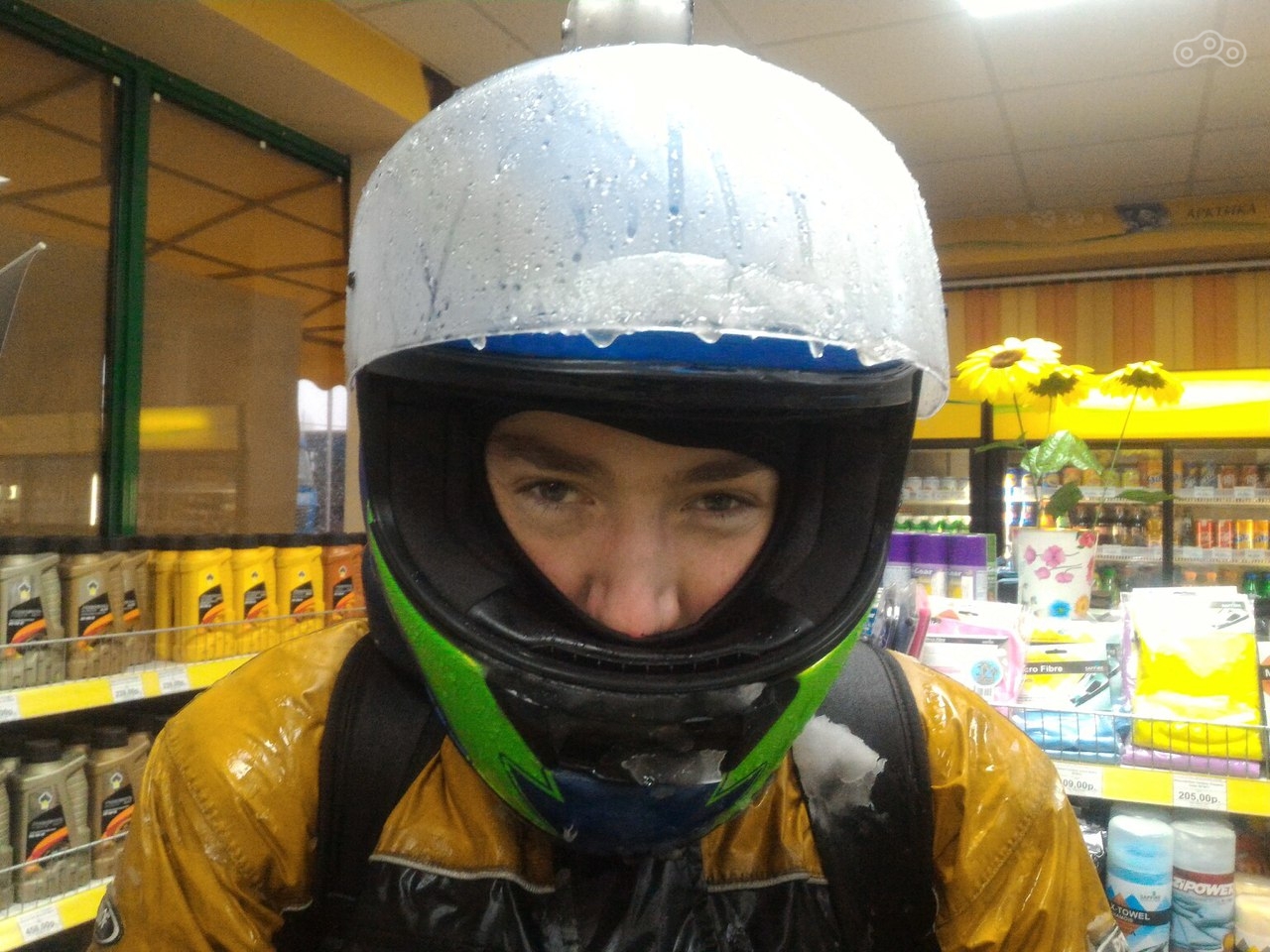 Итак, промокшие боты давали о себе знать, они были просто каменными, и чтобы переключить передачу я снимал ногу с подножки, согнуть было нереально. Проехав Каменск, остановились на заправке, попить чайку- отогреться. Закупаясь очередной партией пакетов, нам предложили немного проехать на карете скорой помощи, но мы, самоотверженные, понимали что к хорошему такое предложение не приведет, поехали своим ходом))).