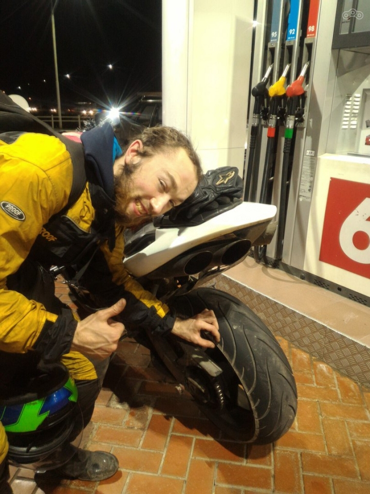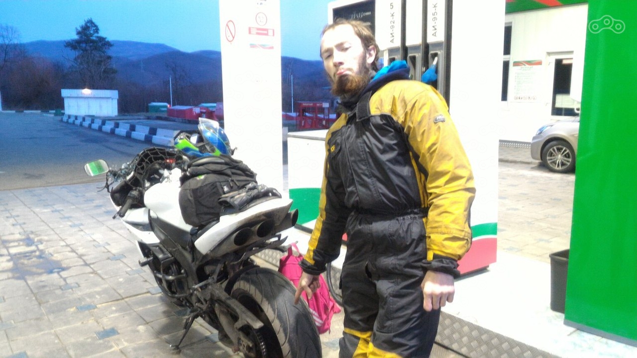 Очко поджав, ядро скрепив, мы двинулись. 200км проехали, ничего. Ну и дал я газку, под 130 ехали. еще километров через 100 вижу, впереди машина ярко слепит задней противотуманкой, не придал этому особого значения, и зря! метров через 50 начало уводить заднее колесо в сторону, секундная масль- тормозить нельзя. Немного сбавив газ, выравниваю мотоцикл- все хорошо, скорость 100. Страшного ничего не произошло, но сердце колотилось бешенно, но я верил- мы доберемся. Все обошлось, остаточный маршрут на знаках уменьшался и уменьшался, но ехать с каждым разом было все труднее и труднее.
