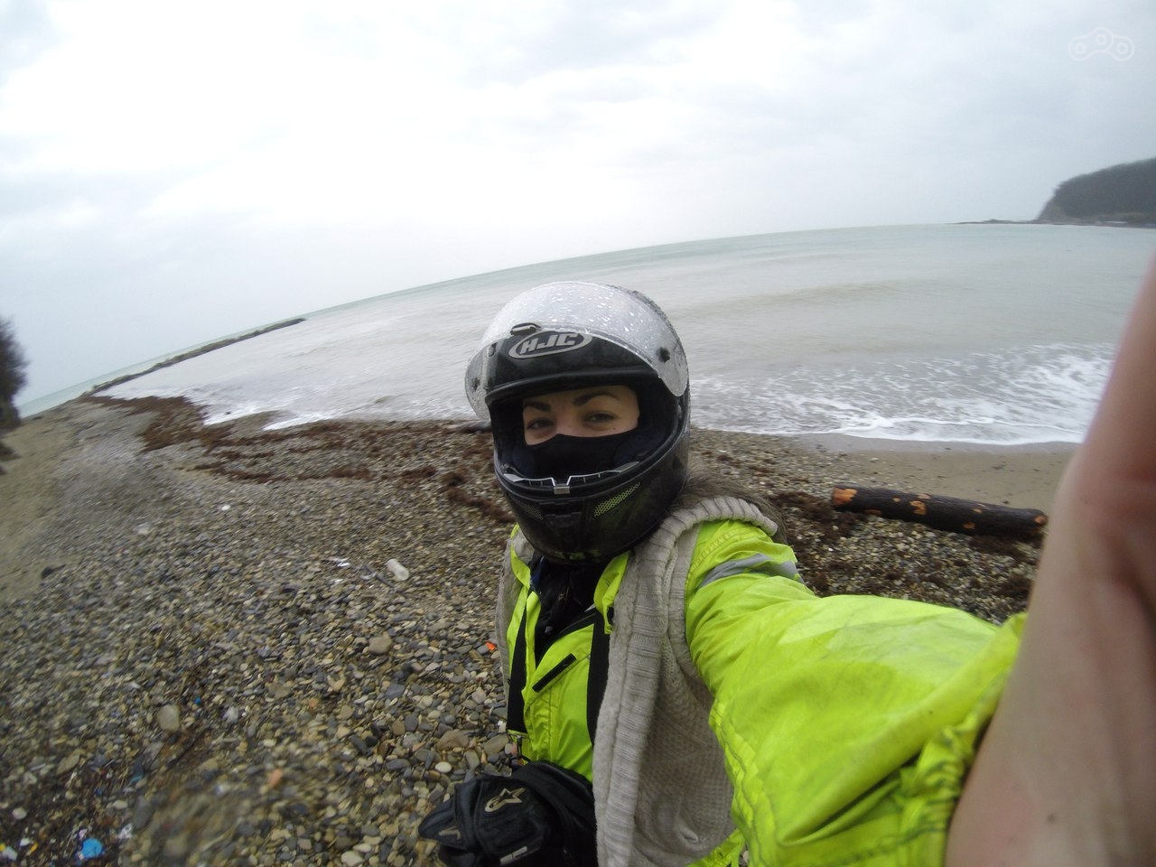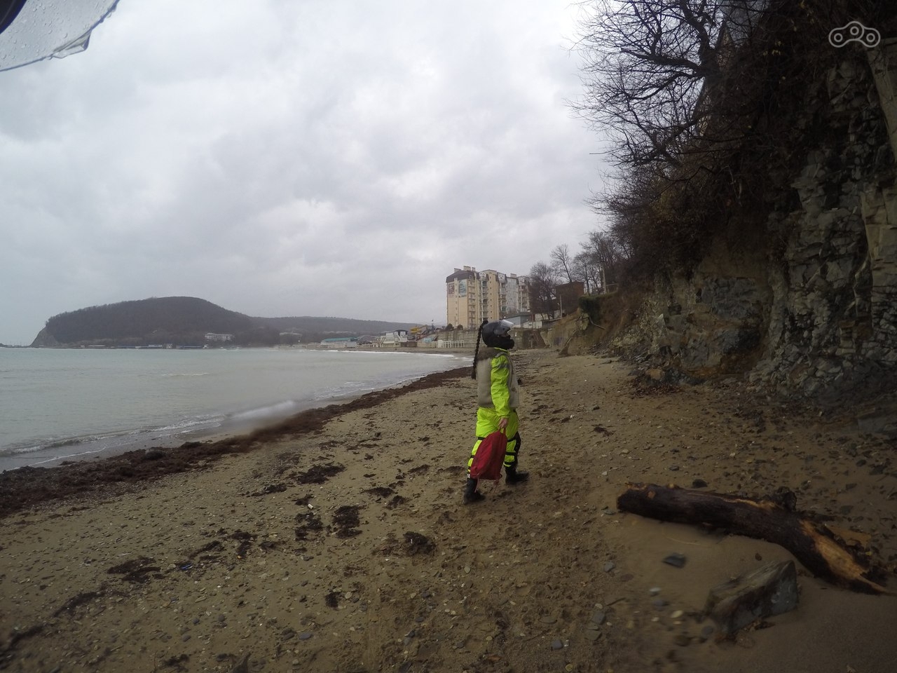 Доехали до Джубгы, нашли отель за 700 рублей, переночевали. Уехали утром, но нужно было доехать до моря, какое оно сейчас, когда не сезон. Не очень я был впечатлен, но и следовало ожидать, погода пасмурная, +1 хотя пару дней назад было тепло. Ничего интересного. Едем, выехали от моря примерно в 2 часа дня. Началась самая холодная пора.
