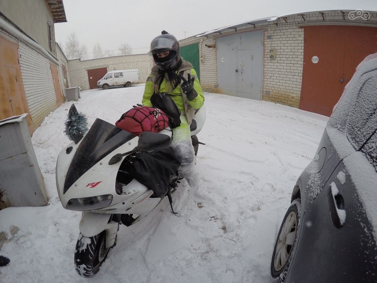 Ну вы реально безбашенные! в хорошем смысле. На моте даже ветровика нет и резина небось обычная дорожная - вы, наверное, пингвины (свободные как птицы, но морозостойкие). В общен круто, удача вас не покинула, желаю и дальше с ней дружить!