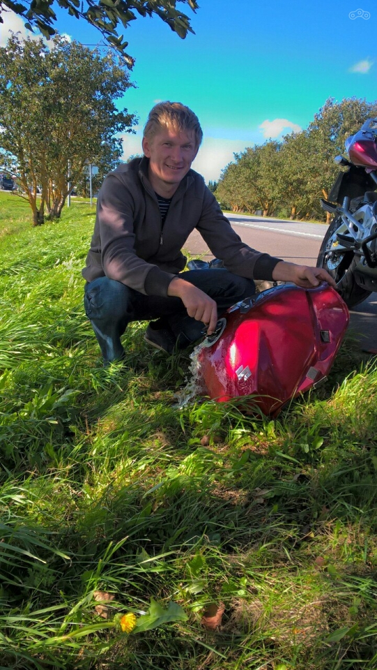 Но русский человек - находчивый человек, особенно, мужчина! Итак, мы свернули куда-то не совсем далеко от заправки, разобрали половину мотоцикла, и, молясь, чтобы нас не засекла какая-нибудь экологическая полиция государства Эстония, по-быстрому слили все, что нужно было слить. Сердце замирало. Что получится из этой экстренной мотопомощи, я и представления не имела. Но на всякий случай сообщила другу в Таллине, с которым познакомилась в мою разведочную вылазку, о том, что если ничего не получится, то надо будет что-то придумывать. За то время, пока бак опустошался, прекрасный друг Райнер практически нашел автобус, чтобы забрать мой мотоцикл, который так искренне сообщил о выборе Папы.