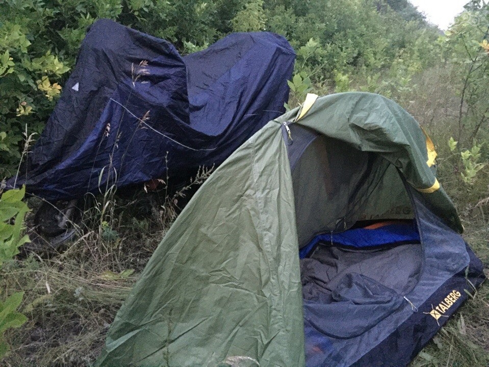 Как же хорошо, когда везет с погодой. Вот только вчера вокруг все поливало, а сегодня к вечеру, по хорошей погоде уже можно поставить палатку, согреть себе чай на газовой горелке и завалиться спать. Немного расскажу про палатку- это трекинговый одноместный вариант. Тот самый вариант, который вы не установите без колышков, либо без должной обтяжки. Одна дуга, проходящая по центру, отсутствие тамбура безусловно дают некий дискомфорт. Зато, при всем при этом, палатка реально ставится и складывается за пару минут, а также имеет вес всего 1,6 кг. Но думаю, что в следующем году надо будет переходить уже на двухместную палатку с тамбуром.