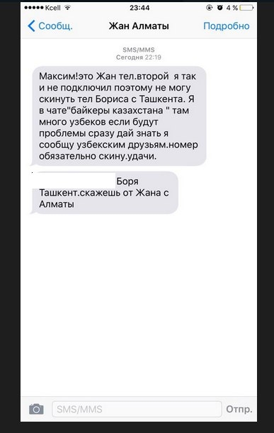 З.Ы. Небольшое лирическое отступление- о том, какие люди встречаются в дороге. На одной из заправок между Уральском и Атырау, встретил пару на Голде, собственно скрин смс просто расскажет обо всем за меня. Всем спокойной ночи.