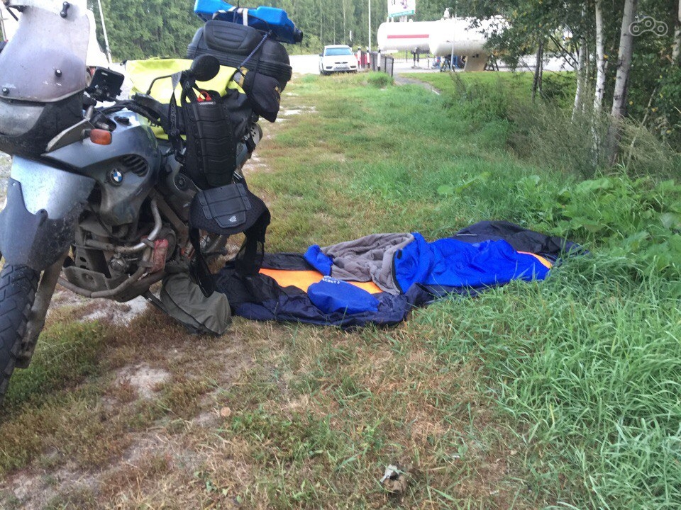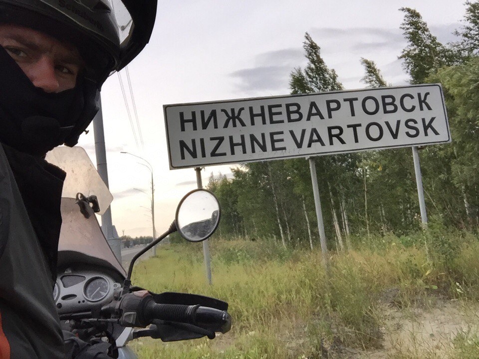 Ранний подъем, еще раньше, чем рассветает. В сумерках собираю горелку, посуду, коврик и чехол. Пристальный осмотр умирающей цепи и быстро дальше в дорогу, наверстывать гандикап, который подарила графику эта самая цепь. Не могу устоять от красивого вида на озера, гору и рассвет. Сворачиваю с трассы на проселочную дорогу, а потом и вовсе на грунтовку. Но вид того стоит, успеваю застать солнце за горой. Стоит только зазеваться и оно моментально красуется на небе. Все ближе и ближе до границы с Россией, все ближе и ближе Родина и то самое чувство, когда твоя нога ступает на ее землю. Удивительно, но погранпост прохожу за 25 минут, никаких проблем, никаких вопросов, кроме стандартных — «сколько прет, сколько жрет и сколько стоит». И вот я уже в Тюменской области, но иду не на запад, а на восток, держу курс на Тюмень. Благодаря информационной поддержке Саши, в моем навигаторе забит адрес магазина, в котором есть нужная мне цепь. К концу рабочего дня я на месте, неподалеку оказывается мотосервис, где ребята помогают мне быстро привести все в порядок, с их помощью на все операции уходит намного меньше времени. И вот уже новая цепь красуется на звездах моего БМВ. Благодарю ребят пивом и еду дальше. Где-то за Тобольском меня настигает темнота и уже привычным движением, я раскидываю чехол от мото, коврик и спальник и заваливаюсь спать. Сплю немного, буквально до рассвета. Вокруг сплошные знакомые места, вот он знаменитый Югорский мост- это вантовый мост длиной около 2100 метров. К этому моменту, начиная с Нефтеюганска меня поливает сильным дождем, а небо, полыхающее молниями и гремящее громом, затянуто до самого горизонта. Так, проехав 300 км под дождем, мокрый насквозь, меня даже не спас дождевик, который сдался после 2-ой сотни километров под дождем, подъезжаю к Нижневартовску. По улицам этого города я без труда ориентируюсь, не используя навигатор. Вот он дом, в котором я вырос, и вот они родители, которые меня встречают. За 4 дня отдыха я меняю масло, фильтра и готовлюсь в дорогу.