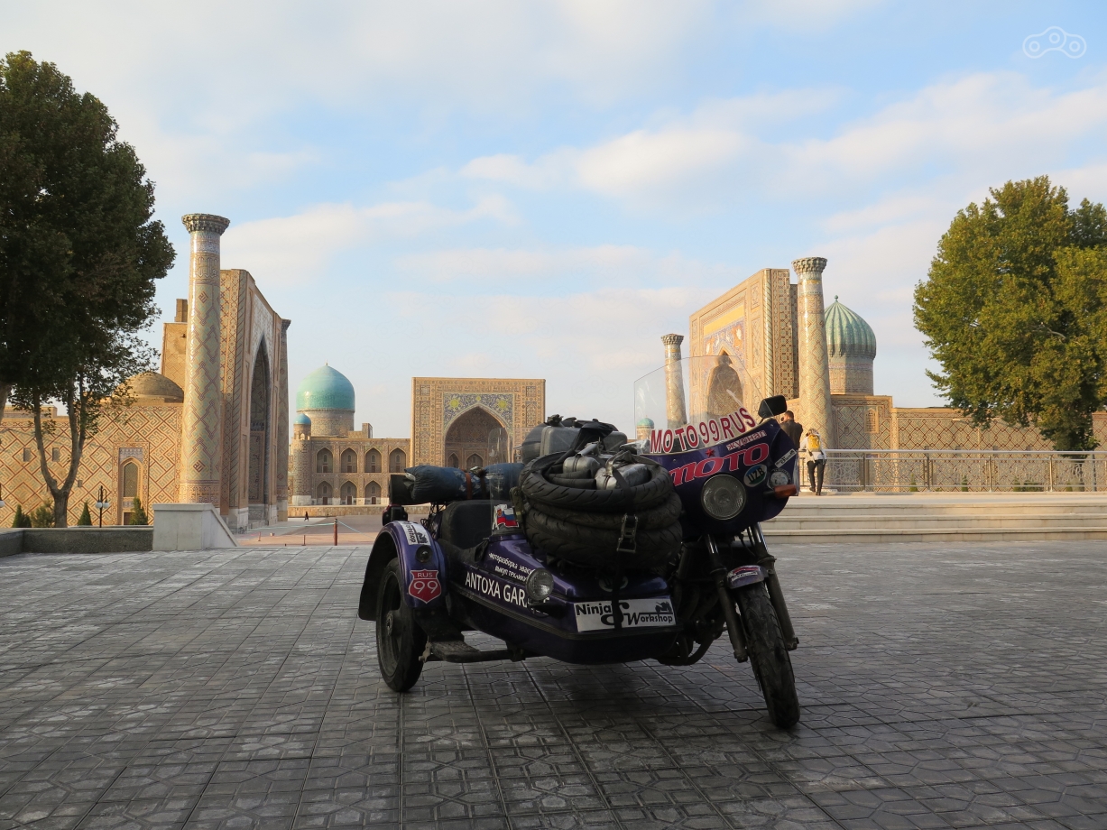 День восьмой. Проснувшись в Ургенче, в гостинице, на миг забыл о том, что за окном сорокоградусная жара- кондиционер приятно молотил воздух до 22 градусов. Но стоит открыть дверь на улицу, как тут же понимаешь, что ты в самой настоящей степной Узбекистанской пустыне, пусть и немного отодвинутой от тебя стенами городской цивилизации. В 30 километрах от Ургенча находится старинный город Хива, являющийся наследием ЮНЕСКО и основанный, вокруг колодца с водой более 2500 лет назад. Громадные стены скрывают за собой лавки торгашей магнитами и всякими пабрикушками, а также несколько музеев. Да собственно говоря, Хива и так считается музеем под открытым небом. Далее меня ждал 400 километровый перегон до Бухары. А вот теперь немного о тех самых проблемах, которые никак не складывались в один пазл. В Узбекистане все плохо с бензином- если вы видите хорошо обустроенную заправку, то это точно Газовая заправка. Все машины, автобусы и такси ездят на газу. Вторая проблема — это дороги, куски оставшейся эпохи республик, тех самых советских социалистических. Ямы могут достигать полуметра глубины и занимать почти всю площадь дороги, поэтому иногда лучше, стоя на подножках, топить по гравию на обочине. Проблема номер три лично для меня- это деньги. Я не люблю менять тонну денег и кататься с местными, я вообще отвык от налички, если честно. Меняют здесь почти везде, но курс значительно разнится. Например, на границе, по понятным шарлатанским причинам, предлагают за 100 баксов 400 тысяч местных тугриков, а вот нормальные менялы дают уже 650. При том, что в банке, официально, вы можете получить только 290 тысяч. Чёрный рынок решает. Так вот, крайне редко и достаточно недолго, я ехал без единой проблемы. То не было асфальта, то бензина, то надо было думать где бы нормально поменять баблишко.