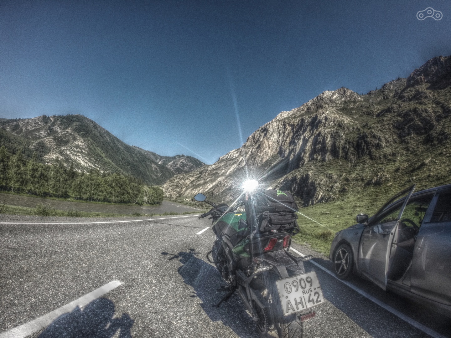 Для тех кто бывал на сей незабываемой трассе, я вряд ли чем то смогу удивить. По сути, Чуйский тракт является именно тем местом, которое запечатляется у начинающего мотоциклиста, в виде каких то красивых фотографий или видеороликах, перед тем как он решает перейти на новый уровень и перевоплотиться из мотоциклиста в "тру байкера". Ой, как завернул, ладно скажу по проще. Что есть байкерская жизнь в стереотипах? Это брутальные мужики, много крутых мотоциклов, ровная красивая дорога, берущие за душу пейзажи и свобода (про вкусных жучков и мух промолчу). В общем картинка в голове представляет западные трассы. Кто то скажет что у нас такого нет, и будет не прав. Чуйский тракт официально признан одной из самых красивейших дорог мира, и часто сравнивается с американской трассой № 66.