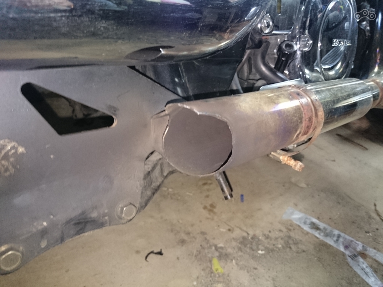 Ну да, внутри теплового экрана сам глушитель от тряски на перевале треснул по кругу. Хотя есть ещё подозрение что там болт не родной поджимал. Пришлось варить, зато на заводе и с гарантией.