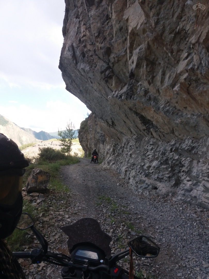 И вот мы подошли к заключительному участку, о котором очень мало информации, наверное потому что никто не проезжает его. Какова продолжительность я не могу сказать, потому что сами мы его не смогли преодолеть. Да мы были на дорожниках (Bajaj Dominar 400 и Pulsar 200), но не в мотоциклах дело, а в том что это просто самоубийство! Красивая ли это дорога? Да она очень красивая. Начинается всё очень даже не плохо с одной стороны заезда, с другой сразу начинается кошмар (со стороны п.Иня). Порой некоторые участки напоминают какую то козью тропу, где над тобой свисают огромные валуны а снизу обрыв и бурная река. Стоит допустить ошибку и вряд ли вообще найдут то что от вас осталось.