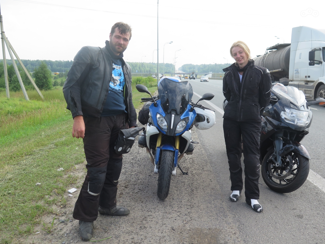Попутчики в пути - всегда здорово. Девушка (прости, забыл как зовут) ехавшая на K1300S в сторону Красноярска, составила компанию нашему экипажу от Москвы до самой Казани.