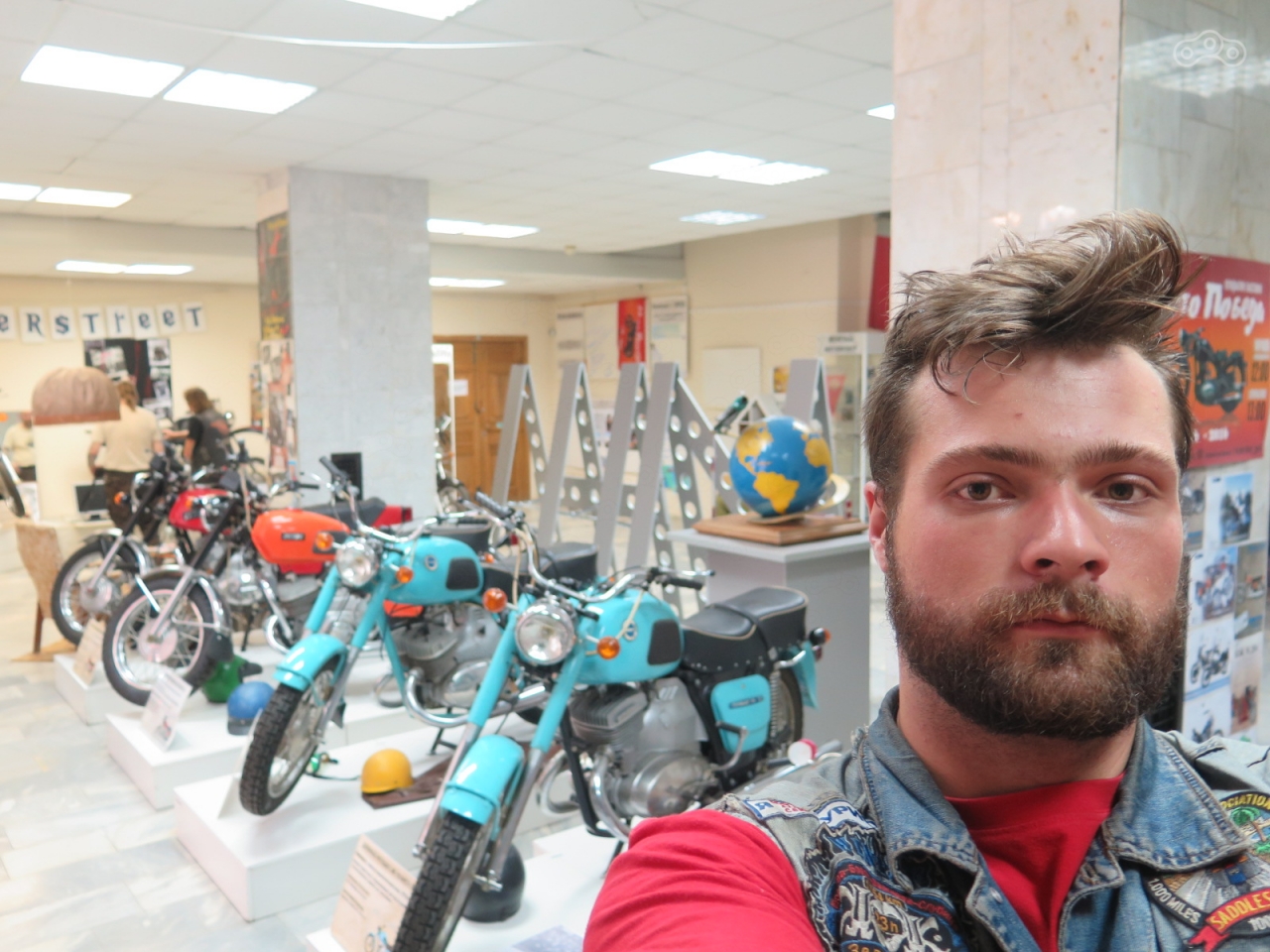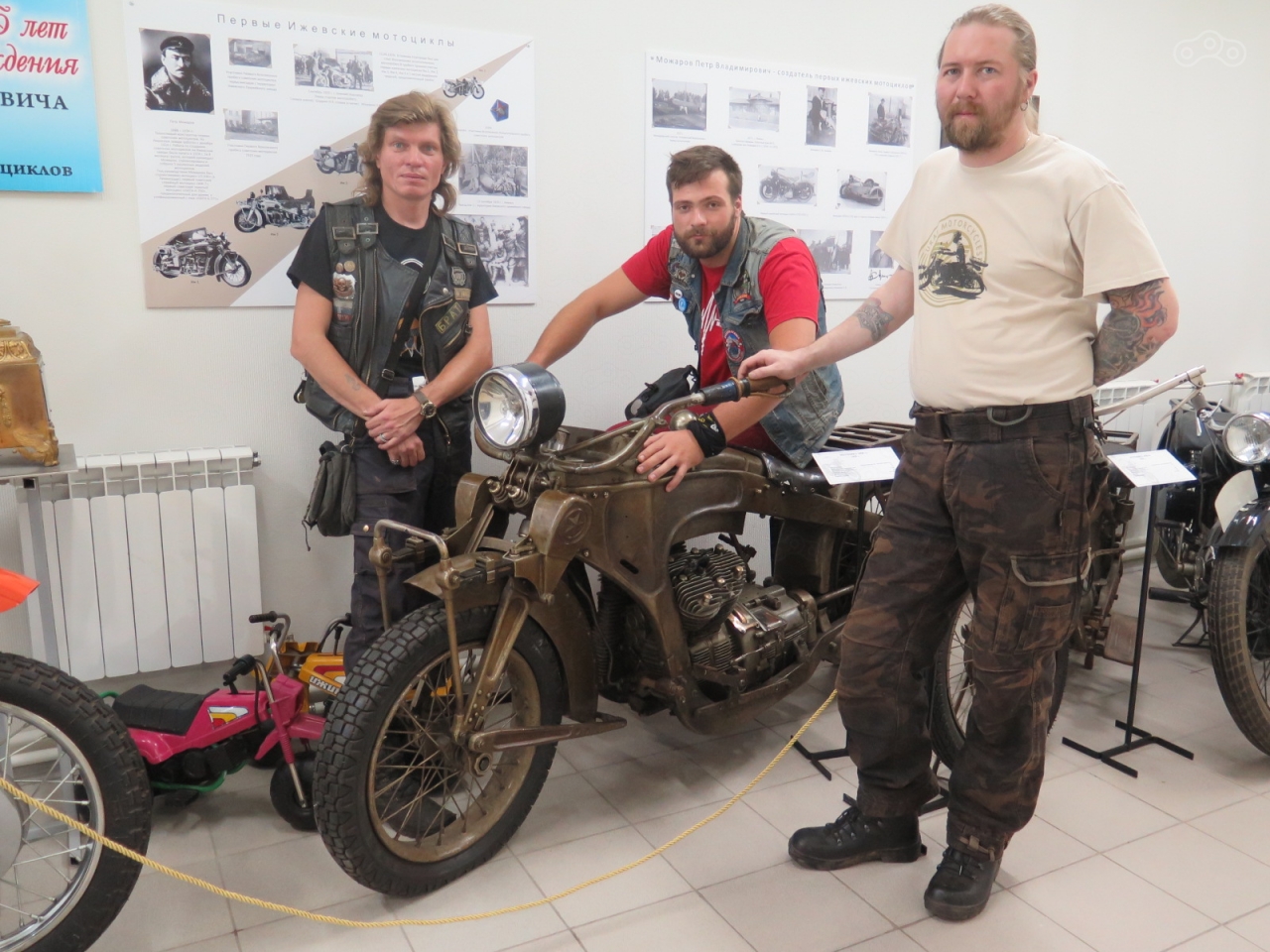 Увы, именно мотоциклетная экспозиция там не очень большая, (про нее когда-нибудь запилю отдельный пост), поэтому мы отправились в Музей Удмуртской Народной Республики, где проходит еще одна мотоциклетная выставка, созданная при активном участии Игоря. Каких-то супер раритетов вроде ИЖ-1 в ней нет, зато есть хорошая подборка серийных машин, подробный рассказ про каждую и совершенно потрясающее оформление с элементами интерактива. Очень круто.
