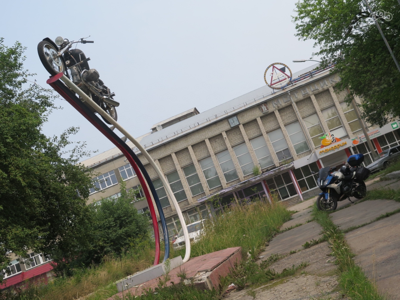 Проходная завода. Мотоцикл особо не охраняет но запчасти с него никто не откручивает, что не может не радовать.