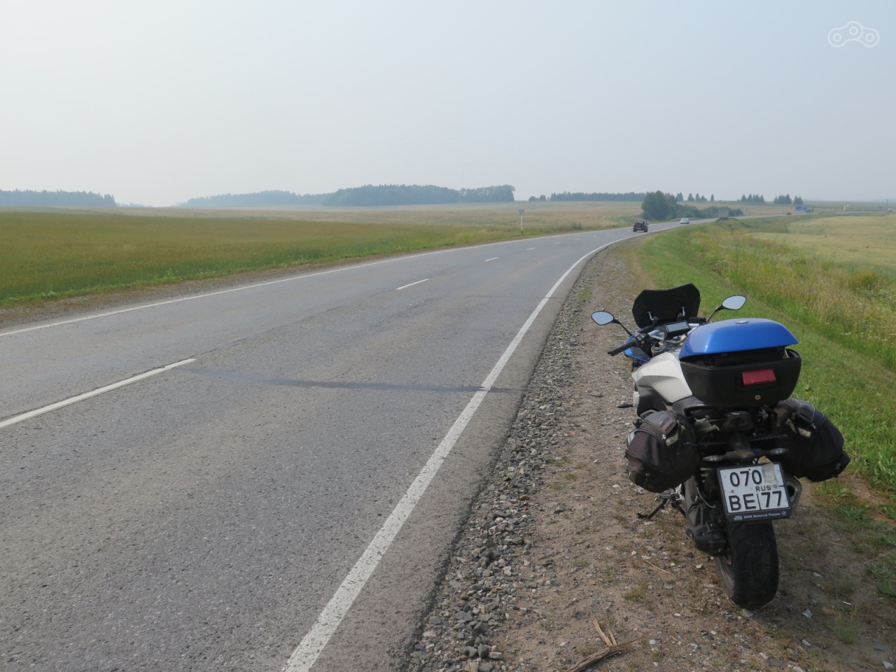Татарстан и следующая за ним Удмуртия встретили красивейшими пейзажами и дымкой - где-то, за несколько сотен, а то и тысяч километров от нас горели леса, но именно запаха гари практически не было, зато картинка за визором завораживала. К закату допилили до Ижевска, где нас встретил человек по имени Игорь на своем ИЖ-49 с коляской и приютил у себя дома.