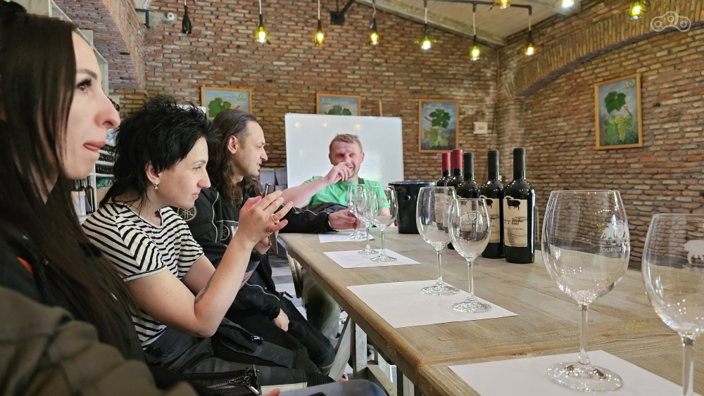 В Тбилиси прилетели наши супруги с которыми мы и продолжили изучать Грузию. Сначала мы поехали в Кахетию и в Алазанскую долину с обязательным посещением завода Киндзмараули, где надигустировались вина, и на обратном пути в Тбилиси нас на перевале накрыл дождь. Где в первый и последний раз мы одевали дождевики. Больше они нам не разу не пригодились.