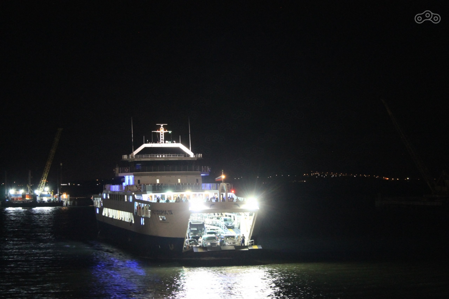 К паромной переправе «Порт Кавказ» мы подъехали, когда уже было темно. Но ночлег планировался уже на территории Крыма, потому мы заехали за билетами (Стоимость билетов: 500 руб. за мотоцикл и по 150 руб. за человека), где встретили теперь уже наших знакомых байкеров, с которыми виделись утром в Каменск-Шахтинском. В отстойнике было довольно много автомобилей. Как же хорошо, что мотоциклы могут проехать без очереди. Подъехав непосредственно к месту погрузки и пройдя осмотр, нас направили на паром со словами «Внимание, мотоцикл!» . 40 минут с учетом погрузки и мы уже в Крыму. О местных дорогах я, наверное, еще не раз напишу, потому что они заслуживают особого внимания.