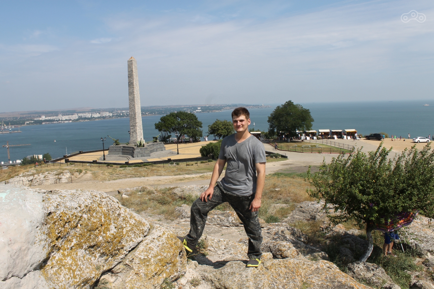 Отсюда мы отправились на гору Митридат. С ее вершины можно рассмотреть весь город и окрестности. Есть два способа, чтобы подняться: в объезд по дороге или по Митридатской лестнице. Конечно же, мы выбрали последний, и, преодолев 436 ступенек, оказались на самой вершине. Раньше здесь располагался античный город Пантикапей, до сих тут пор ведутся раскопки, а гора носит название в честь понтийского царя Митридата. На вершине так же установлен памятник «Обелиск Славы». Особенный он тем, что был установлен еще до окончания Великой Отечественной войны в 1944 г. после освобождения Керчи.