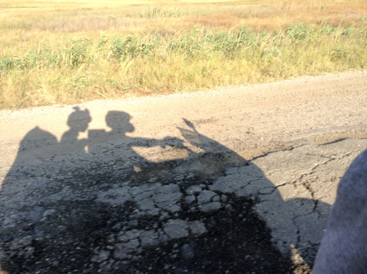 Дорога в этом направлении действительно не очень. Яма на яме. Хотя движение довольно оживленное, но в основном нам встречались внедорожники. На мотоцикле, не спеша, проехать можно.