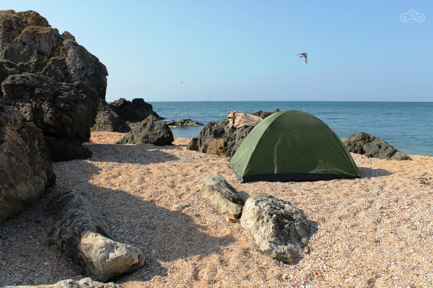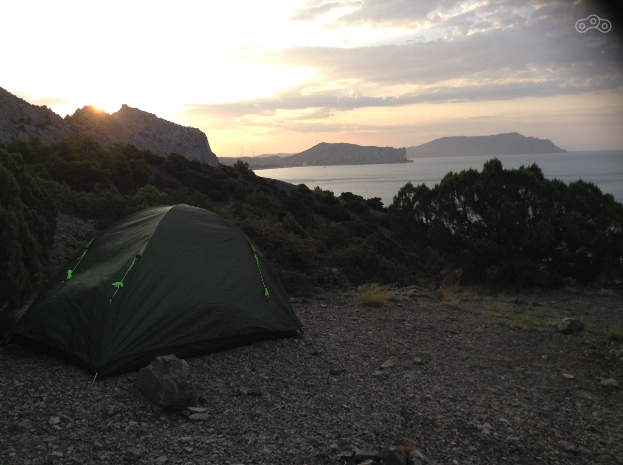 Солнце уже садилось, поэтому надо было искать место, где остановиться на ночлег. Не помню почему, но Судак решили проехать мимо. А вот Новый Свет манил нас к себе горящими огнями и музыкой на набережной. В этих краях мы первый раз, так что, проведя рекогносцировку, поняли, что на пляже ставить палатку – не вариант. Долго думали, искали в интернете, но точных координат не нашли. И как обычно, уже затемно искали место. Расположились на скале между Судаком и Новым Светом, ощущалось дыхание ветра. Мы поужинали, выпили вина и легли спать.