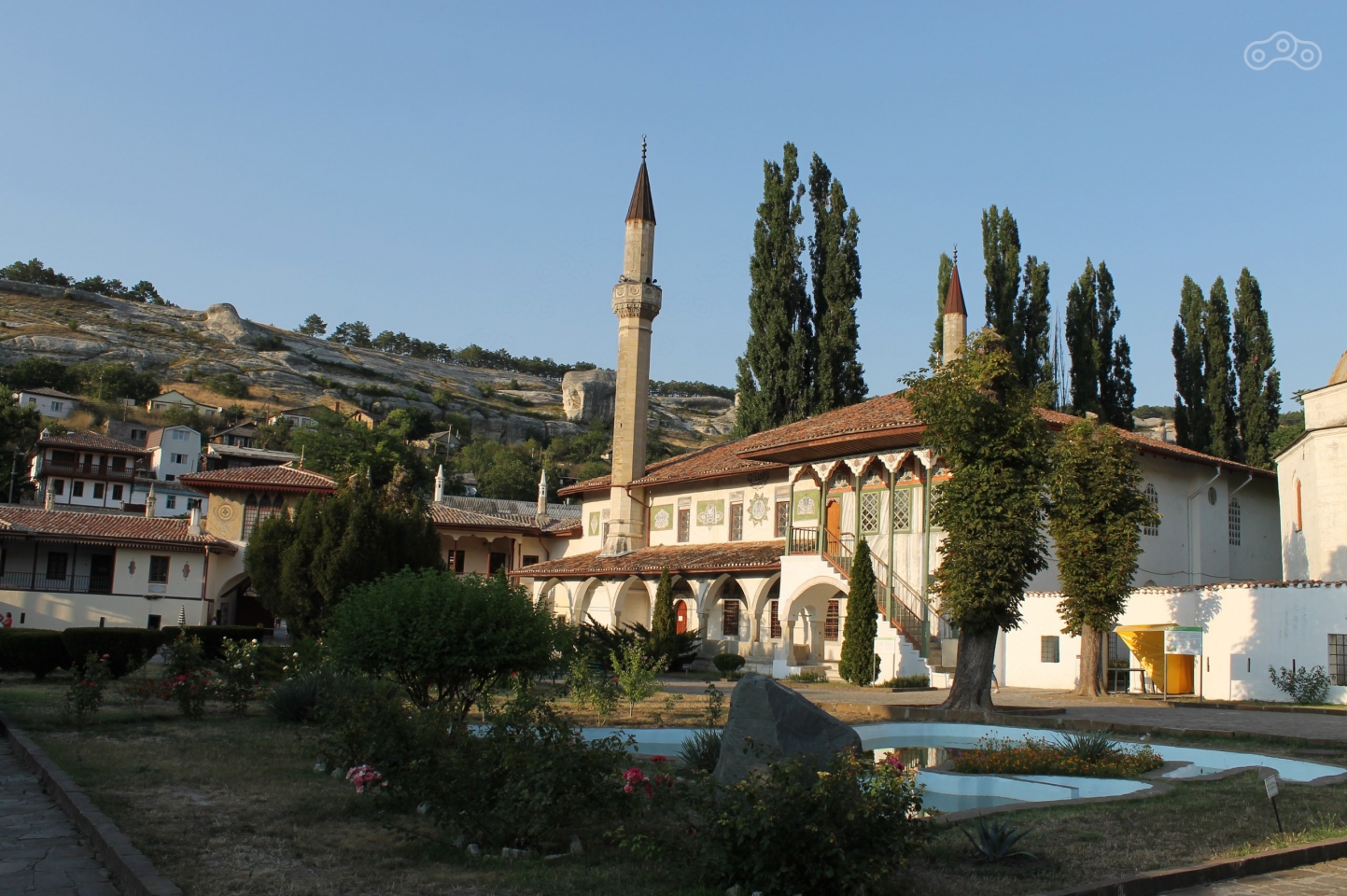 Обязательным для посещения в Бахчисарае является Ханский дворец, куда мы и отправились. На парковке к нам подбежал молодой человек с меню из близлежащего кафе, сказал, что парковка платная (хотя повторюсь, что нигде знаков никаких нет), но он присмотрит за мотоциклом, и нам не нужно будет платить, только приходите в это вот кафе. Очень навязчивый сервис J. Таких зазывал в Бахчисарае очень много около каждой достопримечательности. Дворец красивый, уютный, ухоженный. На его территории проводятся многочисленные выставки. Но мы не любители вернисажей, потому осмотрели дворец и пошли покушать. Кафешки все похожи одна на другую, так что разницы особой не было, и мы пошли в ту самую, куда нас уже несколько раз звали. Не вспомню, как называлась, но было вкусно!