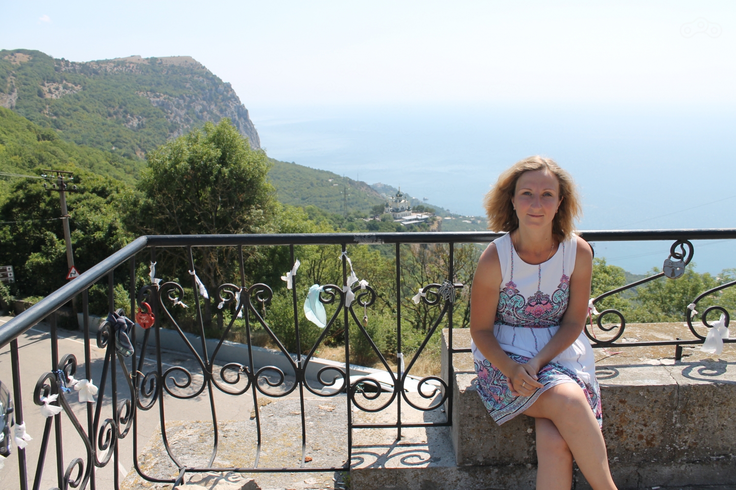 На следующий день мы отправились в том направлении, где еще ни разу не были, - в сторону Севастополя. Поднялись наверх по старой дороге Ялта-Севастополь к Байдарским воротам, которые находятся на горном перевале через главную гряду Крымских гор. На воротах есть смотровая площадка, откуда хорошо виден Форос и Воскресенскую церковь, которая находится на отвесной скале и ориентирована не на восток, как обычно православные храмы, а к морю (это свойственно южным храмам). Внутри она очень светлая. От посещения остались приятные ощущения, несмотря на нескончаемый поток туристов.
