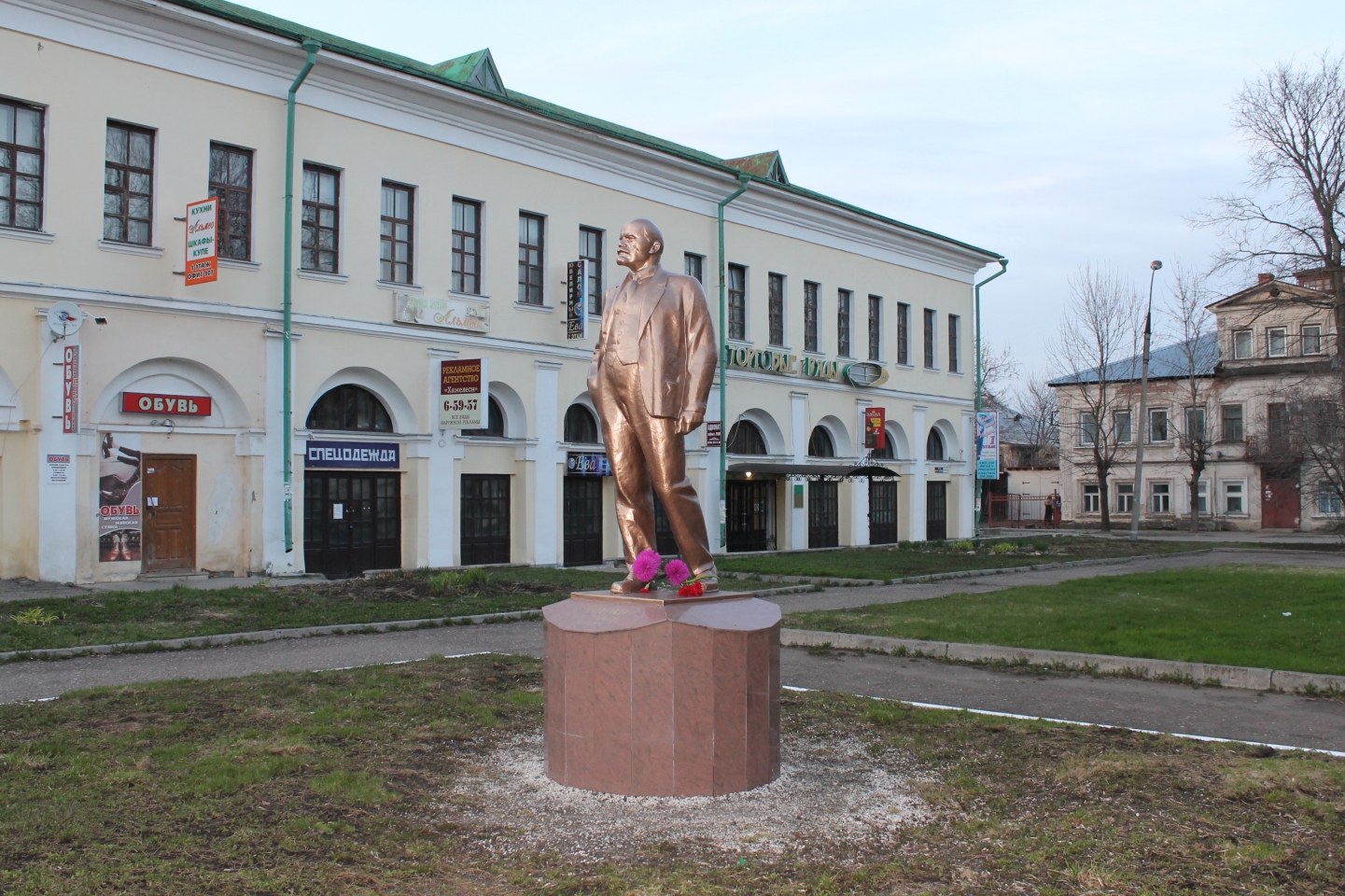 Гуляя по городу, мы набрели на памятник Ленину (к Владимиру Ильичу у нас особая любовь – стараемся везде, где бываем, запечатлеть именно эту фигуру). В Ростове стоит, даже не знаю, как назвать, бронзовая или медная статуя вождя мирового пролетариата с пузиком.