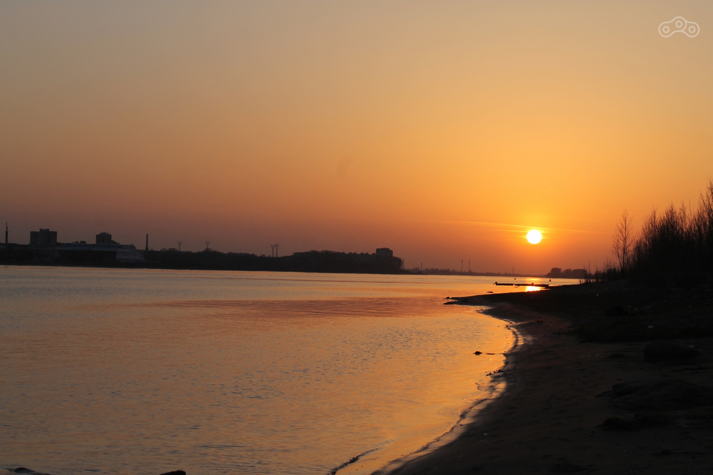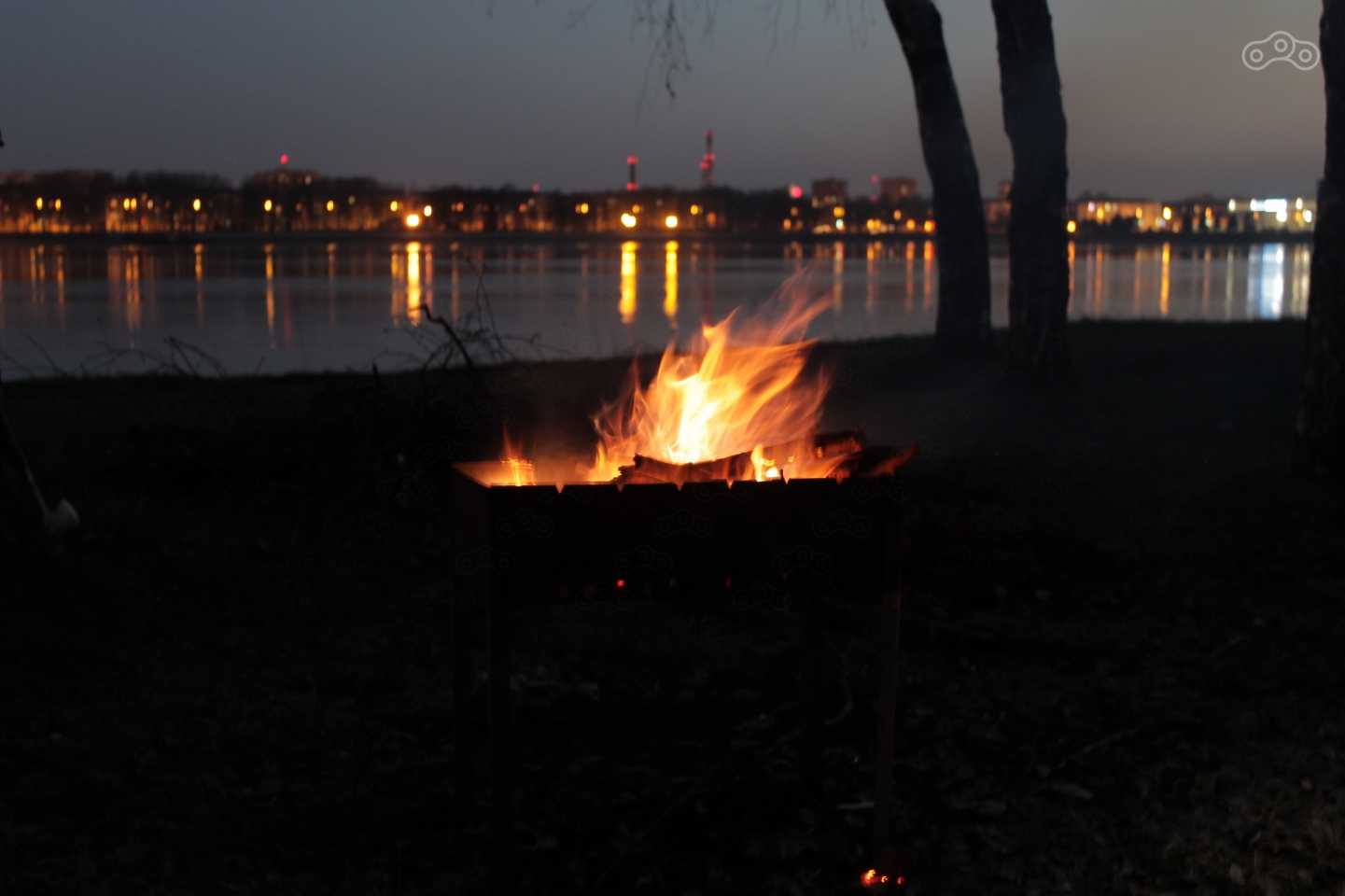 Изначально план был добраться до водохранилища, но солнце уже садилось, и мы, изменив нашу традицию искать место для ночевки по темноте, остановились на берегу Волги прямо в черте города.