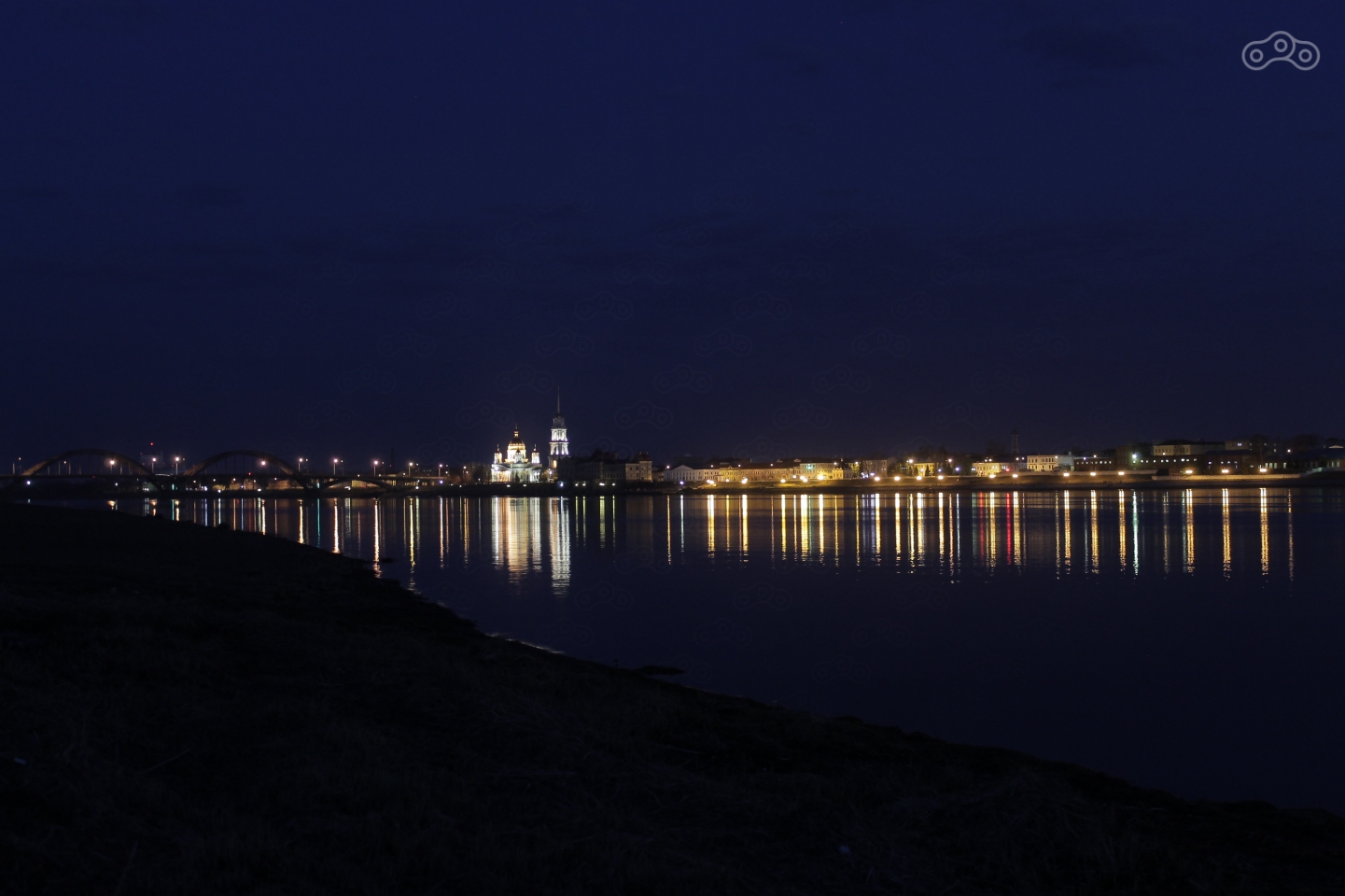 Левый берег Волги ночью. Рыбинск
