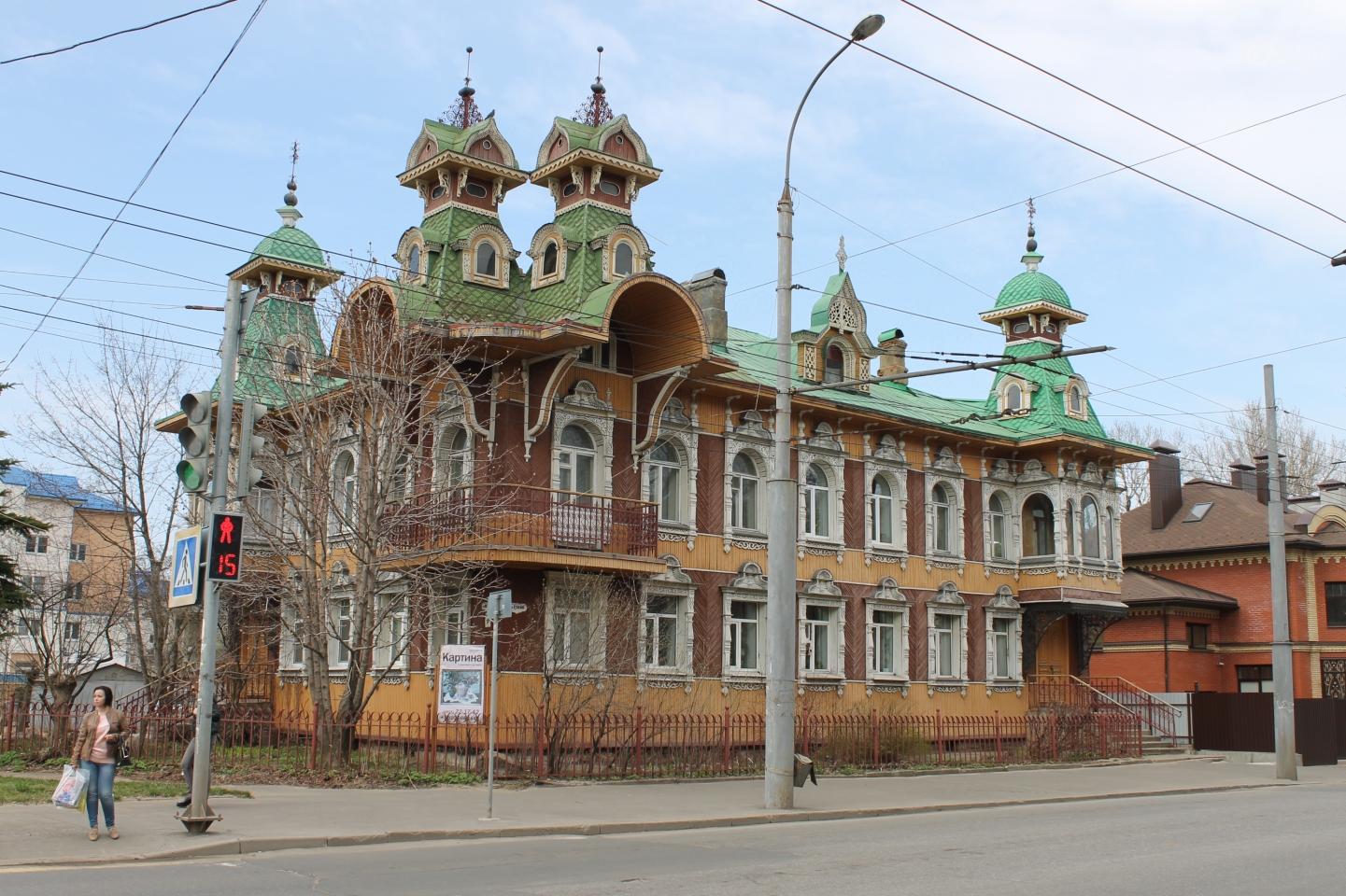 Напоследок в Рыбинске мы решили еще совершить самостоятельную обзорную экскурсию. Остановились недалеко от железнодорожного вокзала. Здесь неподалеку есть две достопримечательности. Одной из них является деревянный Дом художников на улице Пушкина.
