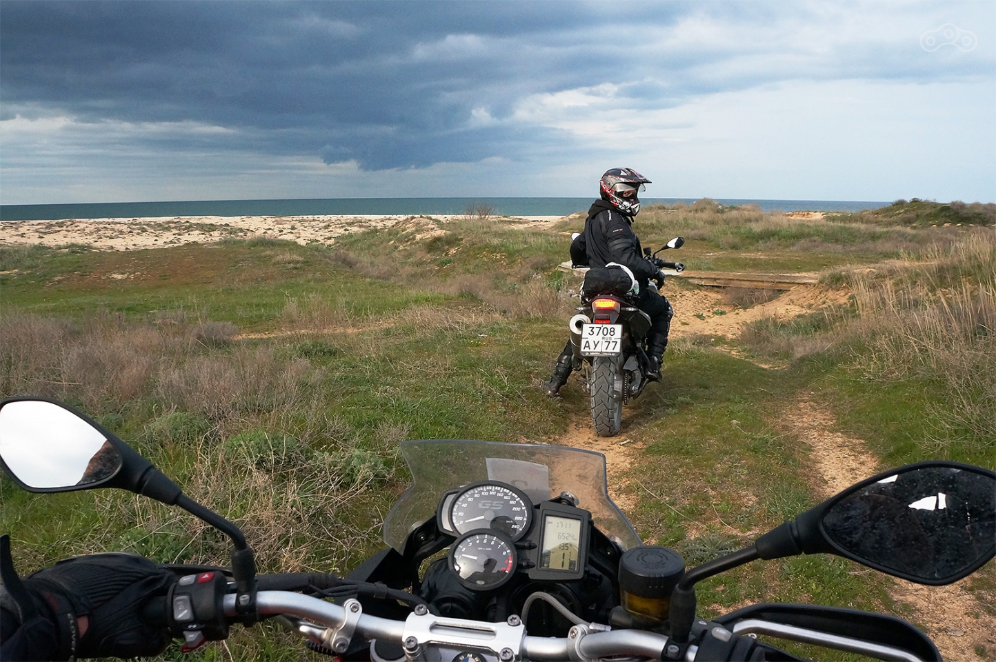 Похожей закалки оказался и наш инструктор Сергей, с той лишь разницей, что так же как на оффроуде, он радовался и на асфальте. Человека, получающего удовольствие просто от езды на мотоцикле в любом её проявлении видно сразу, и он определенно из таких – притопить в повороте, открутить газ на грейдере, разогнаться чуть сильнее перед кочкой, чтобы оторвать оба колеса от асфальта… Наш человек! Который, будучи крымчанином, великолепно знает полуостров и все его самые интересные места, а главное – пути подъезда к ним.