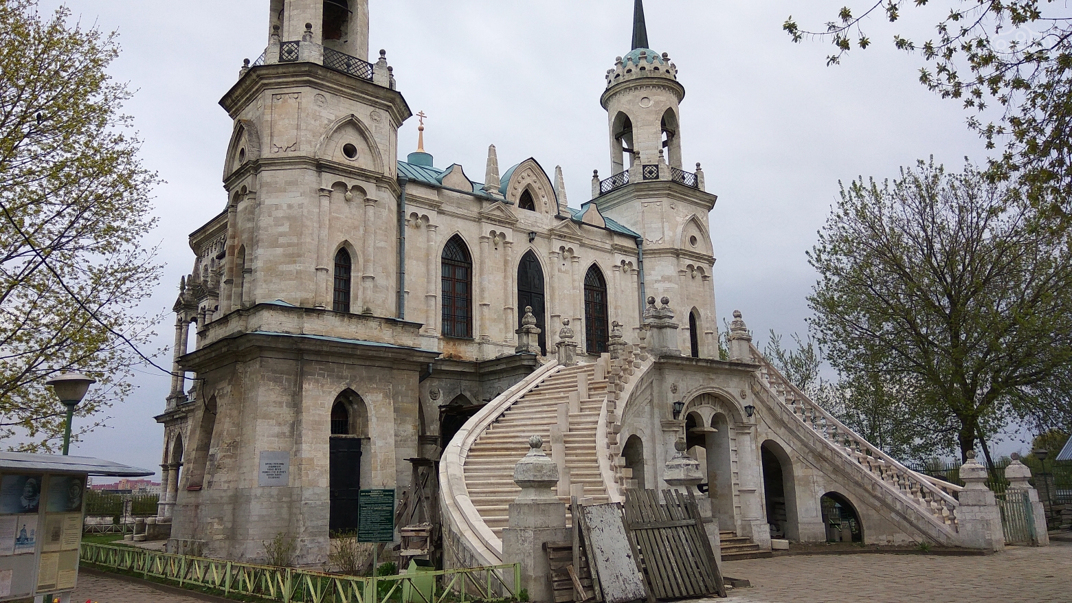 Недалеко от усадьбы находится еще одна архитектурно-впечатляющая постройка - Церковь Владимирской иконы Божией матери. Внешний вид просто потрясает. Спроектировал ее известный архитектор Баженов в конце XVIII века в модном в то время псевдоготическом стиле. Эта церковь считается одним из его лучших творений и больше похожа на сказочный замок, нежели на храм.
