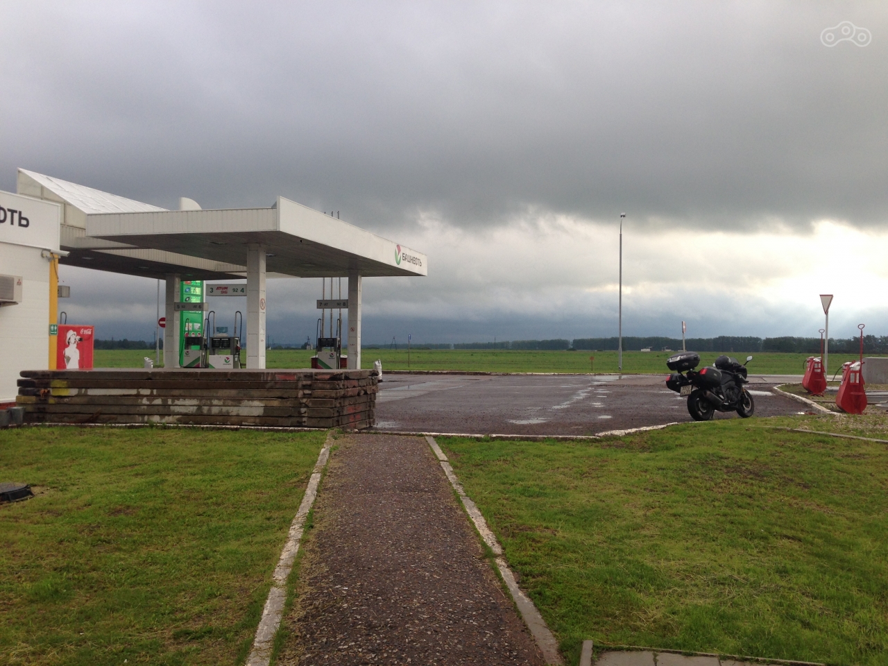 За очередным холмом – спасительная заправка, на которой мы останавливались по пути сюда. Поблагодарив духов дороги за удачное разрешение ситуации, я залил 16 с небольшим литров топлива (в баке оставалось меньше литра..) и продолжил движение с удвоенным энтузиазмом, а, с учётом немного улучшившейся погоды – и скоростью. Ведь дорога предстоит дальняя, а приключения уже начались!