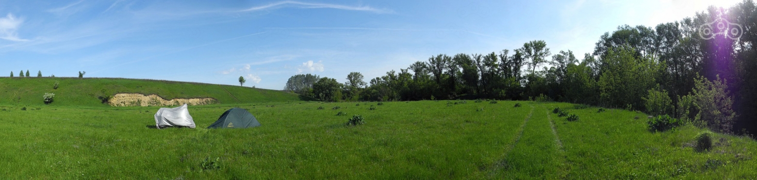Дело в том, что я слабо знаком с туристическим бытом, в частности меня слегка напугали темой с клещами. Ещё больше меня напугал интернет рассказами про боррелиоз и энцефалит, ведь я имею привычку глубоко вникать в тему, которой заинтересовался. Поэтому выбор места для лагеря осложнился ещё и этим фактором. Я ехал по трассе некоторое время, после чего съехал на грунтовку и устремился в поле. Как я понял из гугления, одним из возможных признаков места, где много клещей, является наличие выпаса. В этом же сельскохозяйственном регионе найти поле, где нет выпаса, или оно не вспахано/засеяно, достаточно сложно. Поэтому я стал кружить в поисках поля, где не пасутся коровы. Пока я лазил по берегу реки и полям, я наткнулся на прогуливающегося парня лет 25, остановился и спросил, где тут у них можно лагерем встать, так чтоб клещей потом с себя снимать не пришлось. Он подсказал мне место на берегу реки и спросил, откуда я и куда держу путь. Оказалось, что парень тоже москвич, живёт где-то на востоке, вроде в Перово. Я в очередной раз отметил, насколько тесен мир, пожелал ему удачи и укатил в указанном направлении.