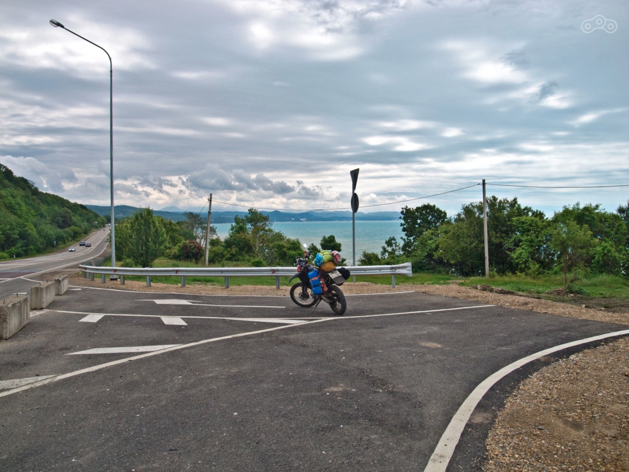 Утро так же началось с громыхания тяжелой техники. Я выполз из палатки, немного размялся, не спеша собрался и выдвинулся в сторону Сочи. Дорога до Сочи стала для меня неожиданностью. Режим движения на ней очень неторопливый и на ней довольно часто попадаются фуры, правда есть карманы и даже местами стоят таблички «Тихоход, пропусти поток». Однако особо разогнаться там всё равно бы не получилось – дорога изобилует разворотами на 180 градусов с одновременным 5-7% подъёмом или спуском, и слепыми поворотами. Тем не менее, пока я доехал до Сочи, я успел изрядно «отложить кирпичей», прежде чем влился в темп движения. Дважды я чуть не вылетел на встречку, дважды чуть не вылетел на обочину, один раз чуть не столкнулся с местным мотоциклистом, который шёл на обгон по встречке в слепом повороте (самоубийца!) и один раз меня чуть не зацепила встречная газель, т.к. я по привычке шёл по внутреннему кругу (водитель газели что-то прокричал мне в окно). Асфальт на этой дороге идеальный, правда местами идут дорожные работы, но я в заторы ни разу не попал, кроме разве что Лазаревского – там пришлось чуток потолкаться в пробке.