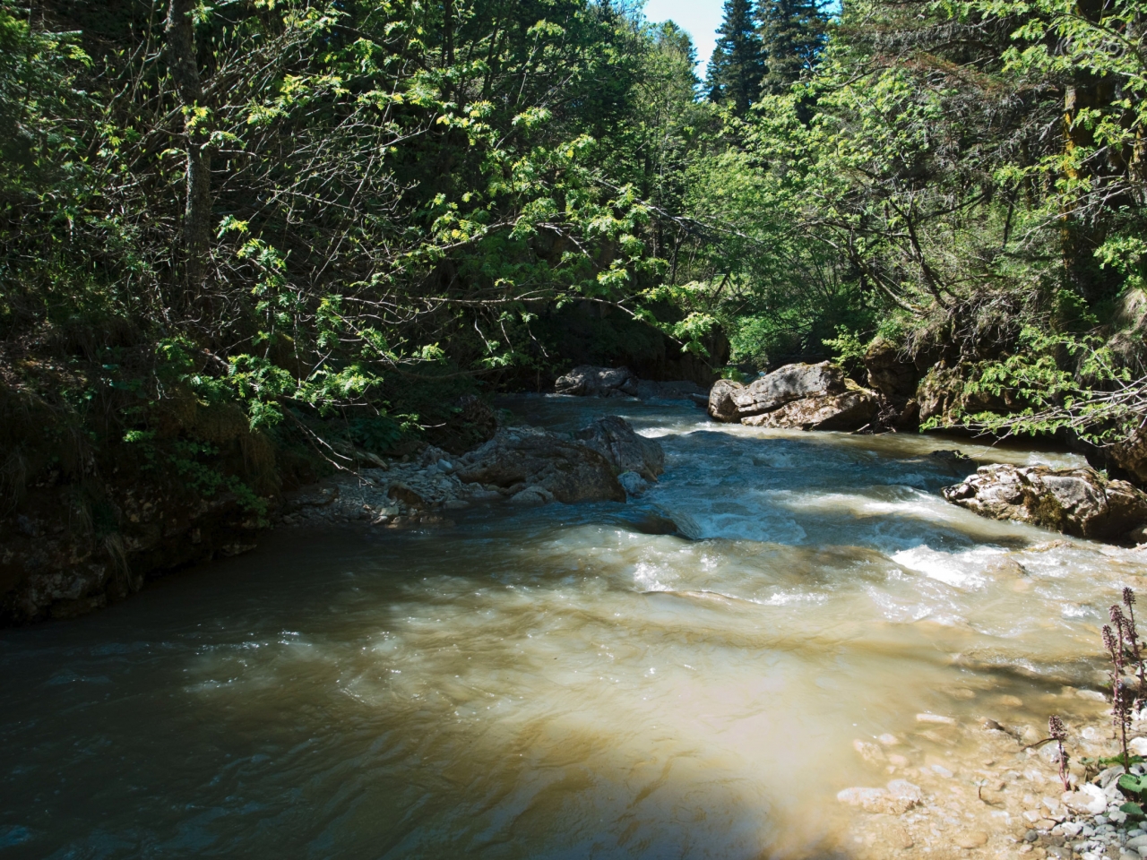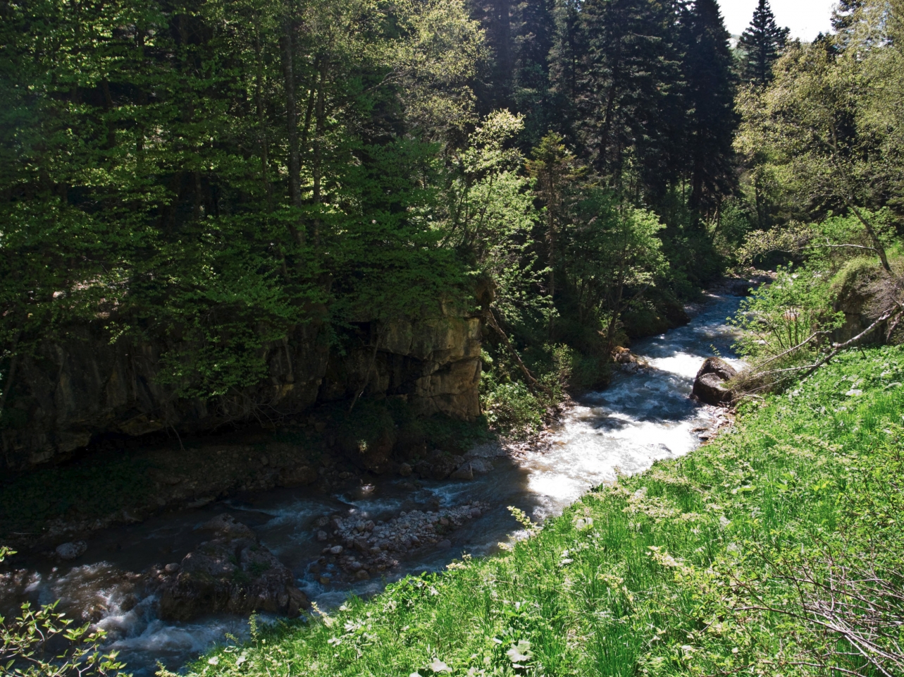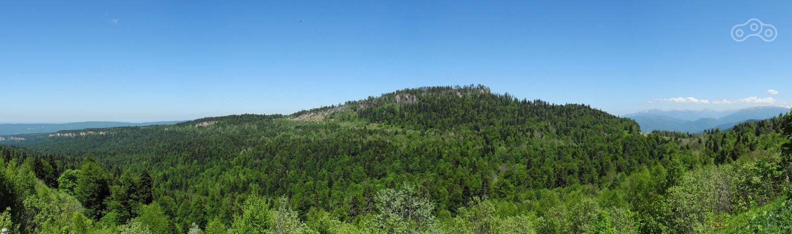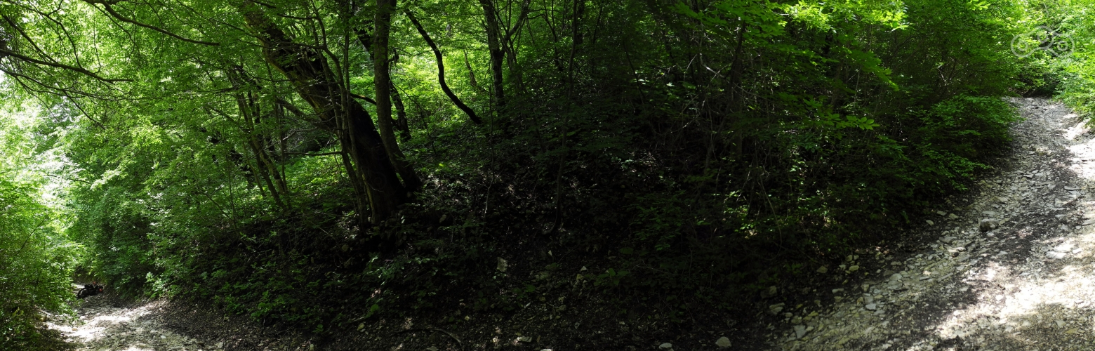 Проезжая перекрёсток с указателем на Лаго-Наки возле станицы Даховская, я не смог себе отказать в удовольствии подняться туда. На полдороги у меня внезапно стало заканчиваться топливо (в горах мот плохо ехал, но расход был при этом ниже, т.к. я при подъёмах забеднял смесь). Пришлось спуститься, доехать до ближайшей АЗС и потом вернуться снова. Дорога на Лаго-Наки оказалась весьма разбитой, а в самом конце и вовсе грунтовым грейдером, и я снова отрывался, ощущая преимущества длинноходной внедорожной подвески, обгоняя автомобили. В конце подъёма я увидел шлагбаум экологического поста, за который ехать на ТС было уже нельзя, только пешком. Я спешился и увидел мужичка, продававшего сыр. Мужичок, увидев меня, схватил камень с земли и стал изображать, что качается. Мы вместе посмеялись на его шуткой, я купил у него кусочек сулугуни поменьше, так чтоб на одну порцию, и залез на смотровую площадку, покрытую крупными камнями и хвойными деревьями, откуда открывался вид на собственно плато Лаго-Наки. С площадки хорошо было слышно шум реки Курджипс, протекавшей внизу. MAPS.ME подсказывал, что также внизу есть водопад Каскадный, и я решил до него прогуляться. Благо навигатор показывал расстояние до него не более 850 метров. Я скинул черепаху, повесил шлем на мотоцикл и стал спускаться. По словам торговца сыром, до водопада путь был примерно на полчаса ходьбы. Но мне, как человеку не очень опытному в лазании пешком по горам, дорога показалась очень длинной. Причём я до сих пор не могу определиться, что было сложнее – спускаться или подниматься, потому что уклон там довольно большой, а на такой высоте физнагрузки вообще в принципе даются с трудом из-за разряженного воздуха. Тропинки местами размыты ручьями и разбиты конскими копытами, а лес завален буреломом. И если идти по лесу было ещё более-менее легко благодаря тени от крон деревьев, то когда я спустился к реке и попал под палящее солнце, я осознал, как я сглупил – я не взял с собой питьевую воду. Пришлось восполнять проблему путём вымачивания джерси в бурной горной реке. В итоге я таки дошёл до перекрестья реки, за которой шумел водопад, но посмотреть на него смог лишь издалека, т.к. видимо река в этом году очень полноводная, и место, обозначенное как переправа через реку, было абсолютно не проходимо без варианта если не искупаться, то как минимум вымокнуть по колено. Возвращение назад оказалось не менее сложным, т.к. приходилось лезть вверх, а наколенники оставить на мотоцикле я не догадался, да и мотоботы не самая комфортная обувь для походов. В общей сложности прогулка заняла два часа, я вернулся вымотанный, но довольный – я наконец увидел водопад, пусть и издали. А то как это вообще, побывать в горах и не увидеть водопадов? )) В общем если что, имейте в виду, что 850 метров в горах это совсем не то же самое, что 850 метров в степи или в городе. ;-)